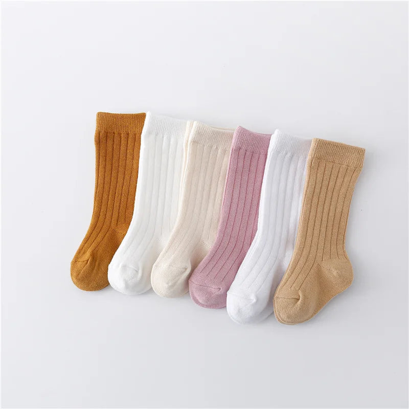 Keep your little ones' feet cozy and stylish with these adorable knee-length socks. Crafted from soft and breathable cotton material, these socks are perfect for everyday wear, school, or sports activities.
