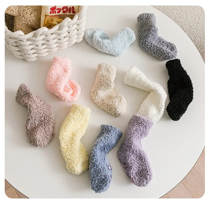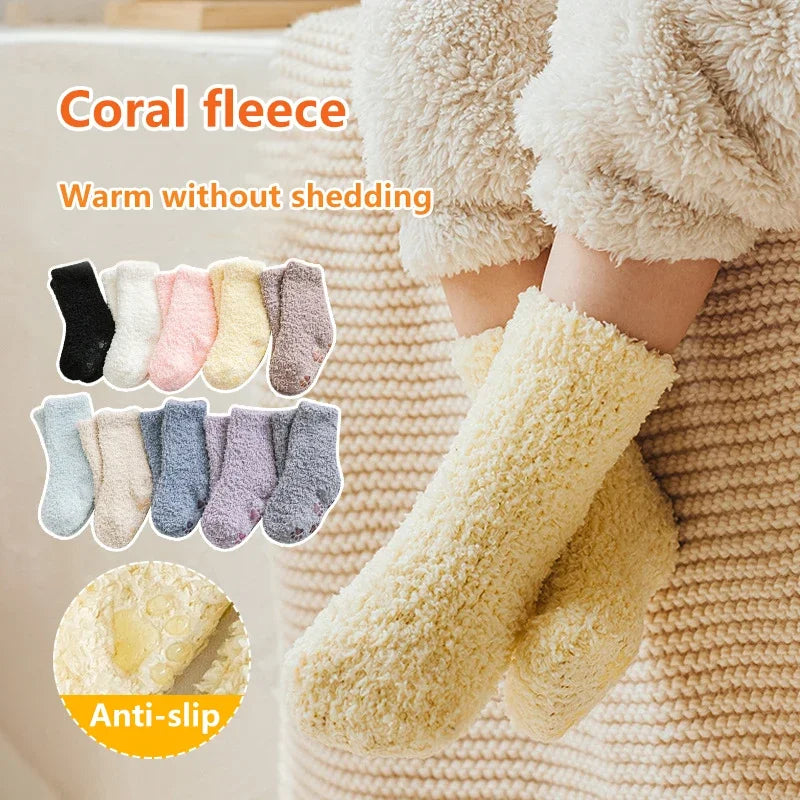 Keep your little ones' feet warm and cozy during the cold winter months with these thick snow socks. Made from soft coral fleece material, these socks provide exceptional warmth and comfort for babies and children aged 0 to 5 years.