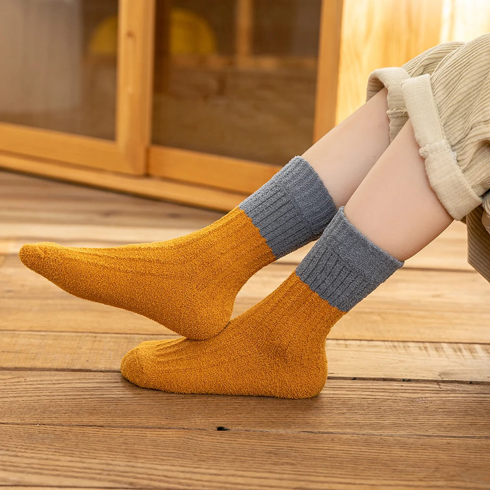 Keep your child's feet warm and cozy during the cold winter months with these thick coral fleece socks. Featuring a charming patchwork design, these socks are both stylish and practical.