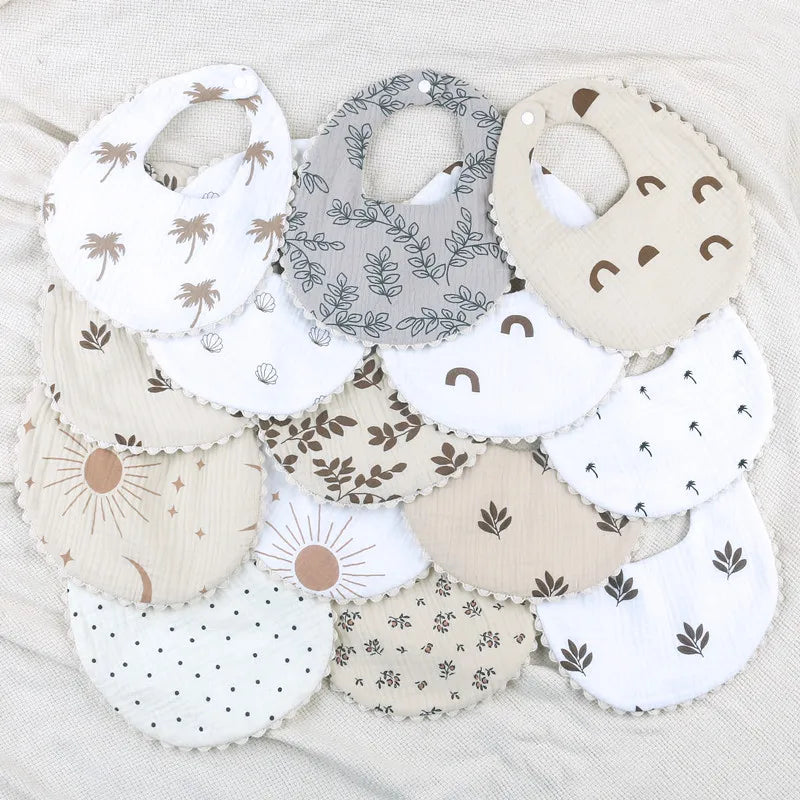 Invest in quality and style with our lace floral cotton gauze baby bibs. Whether you're a new parent or looking for a thoughtful gift for a baby shower, these bibs are sure to be appreciated. Add them to your infant accessories collection and enjoy the practicality and charm they bring to everyday baby care.