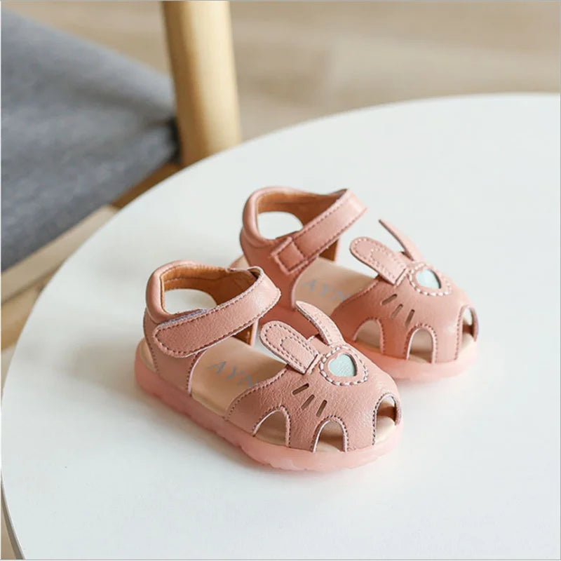 Featuring a closed-toe design, these sandals offer protection and support for tiny toes while allowing breathability to keep feet cool. The soft sole provides cushioning and flexibility, ensuring easy movement for active toddlers.