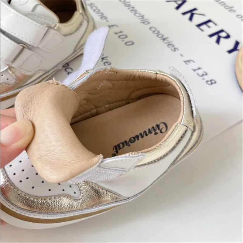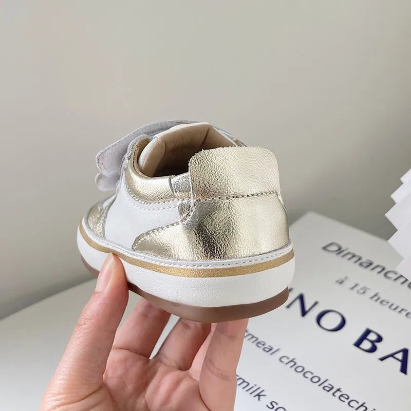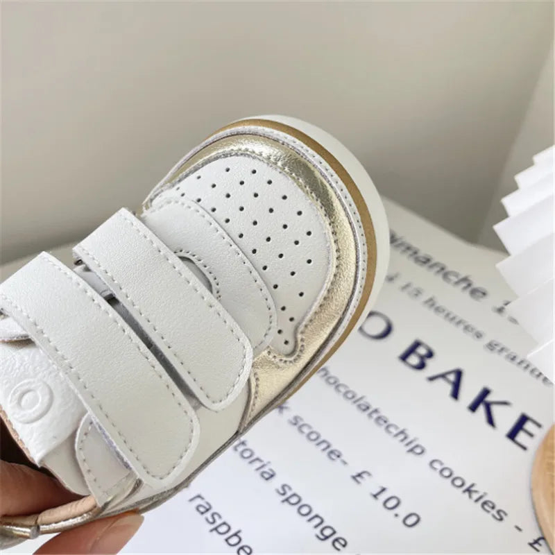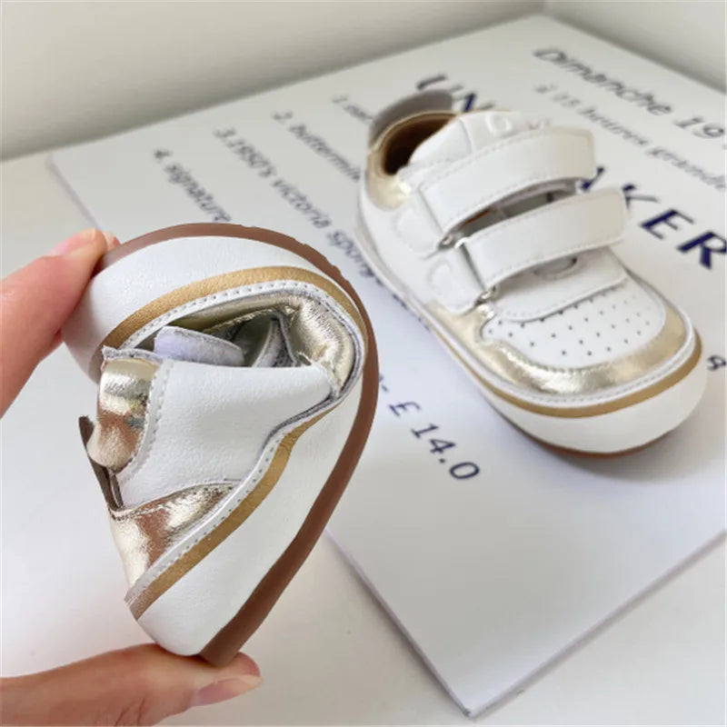 Featuring a soft sole, these sneakers provide gentle support for developing feet while allowing natural movement. Whether it's for outdoor play or a casual outing, these shoes are versatile and fashionable.