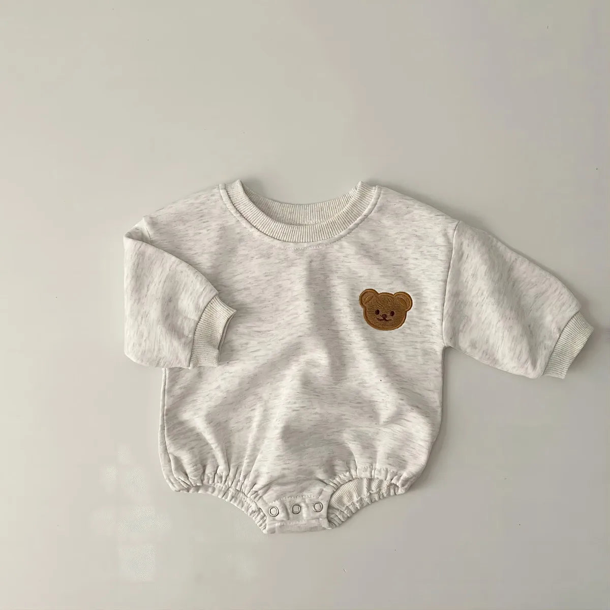 Little Bear Logo Cotton Bodysuit - Long Sleeve Newborn Clothes for Spring/Autumn