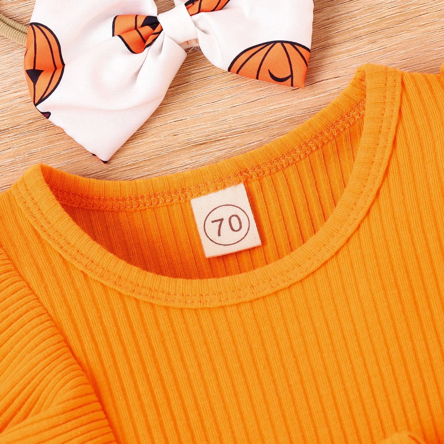 Crafted from soft and comfortable fabric, this romper ensures your baby stays cozy and stylish during Halloween festivities. The long sleeves provide extra warmth, while the cartoon prints add a cute and festive vibe to the outfit. Complete with matching headbands, this outfit is perfect for capturing precious memories during this special time of year.