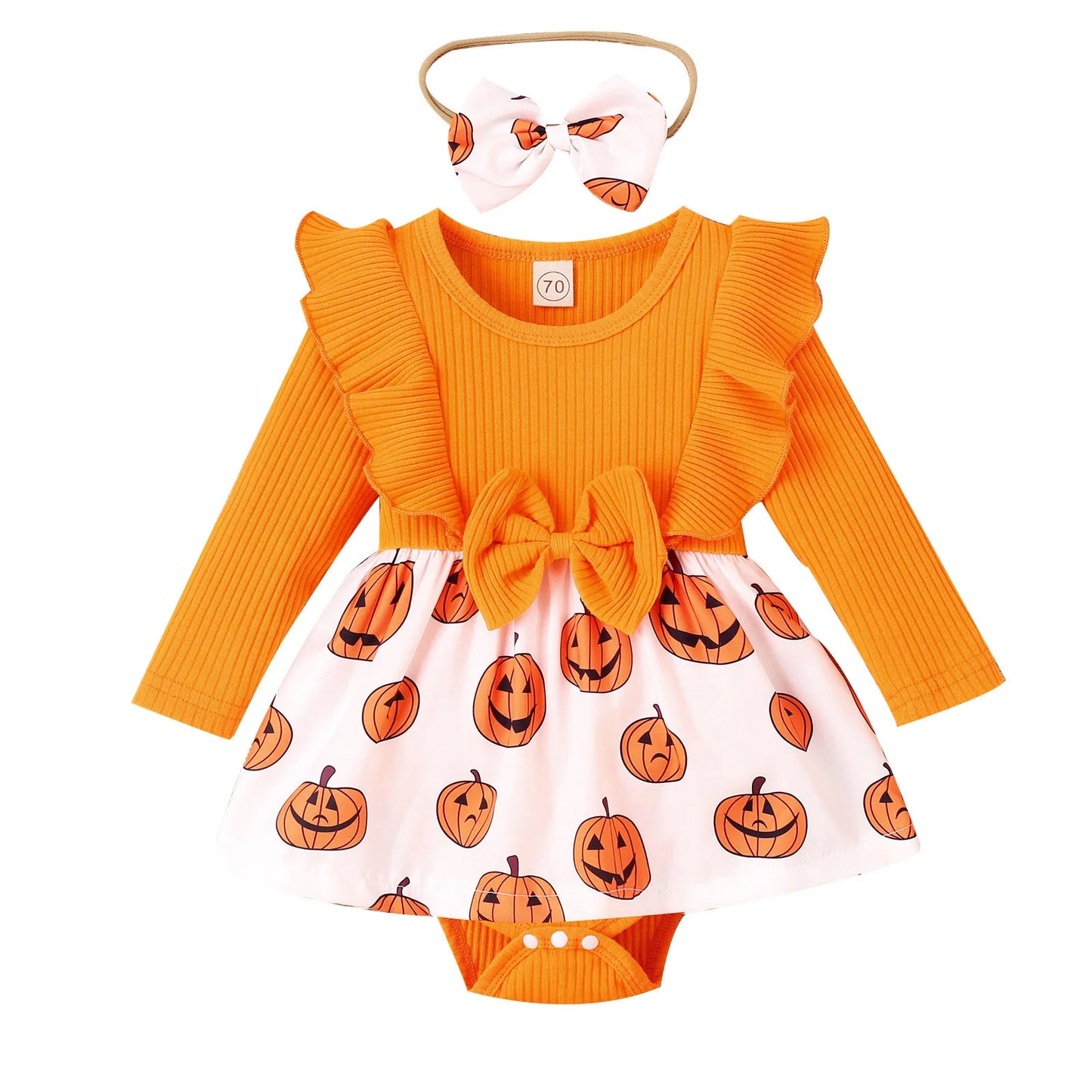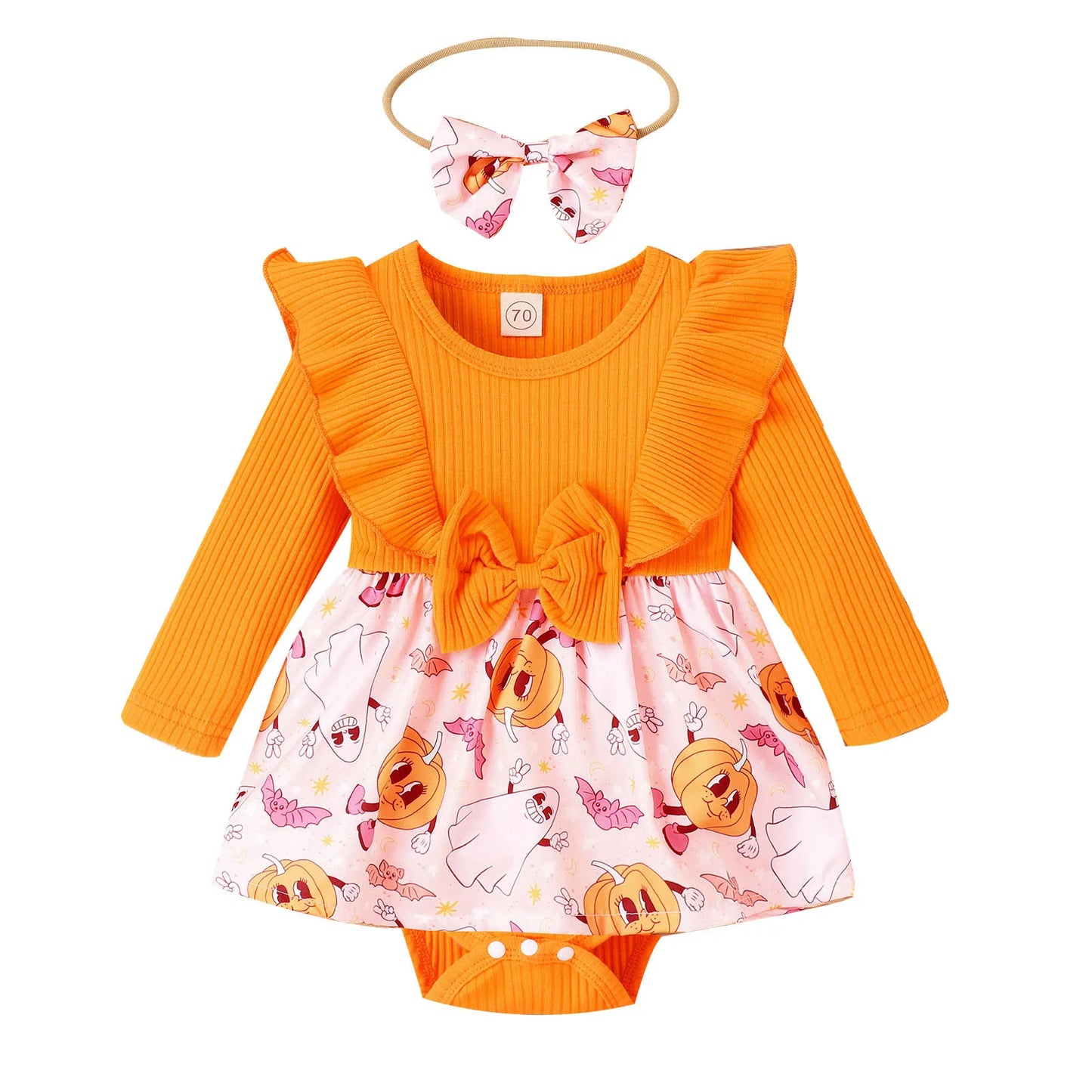 Make Halloween extra special for your baby girl with our Cartoon Prints Romper and Bodysuits Dress Headbands Outfits. Let her embrace the spirit of the season in style and comfort, creating cherished memories that you'll treasure for years to come.