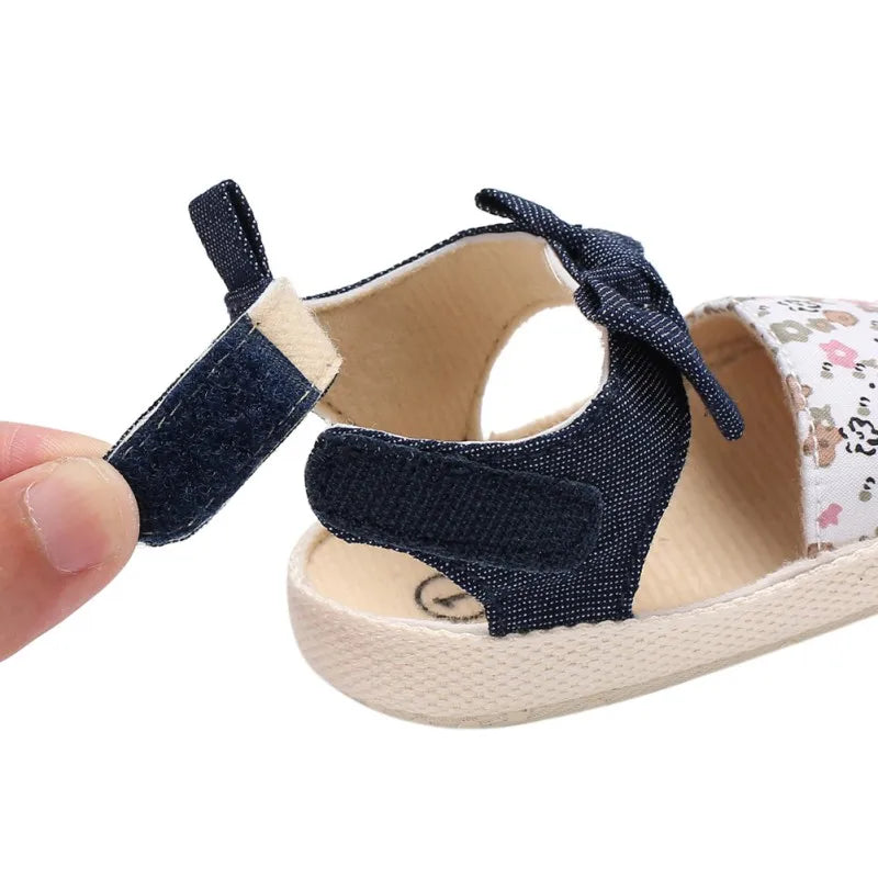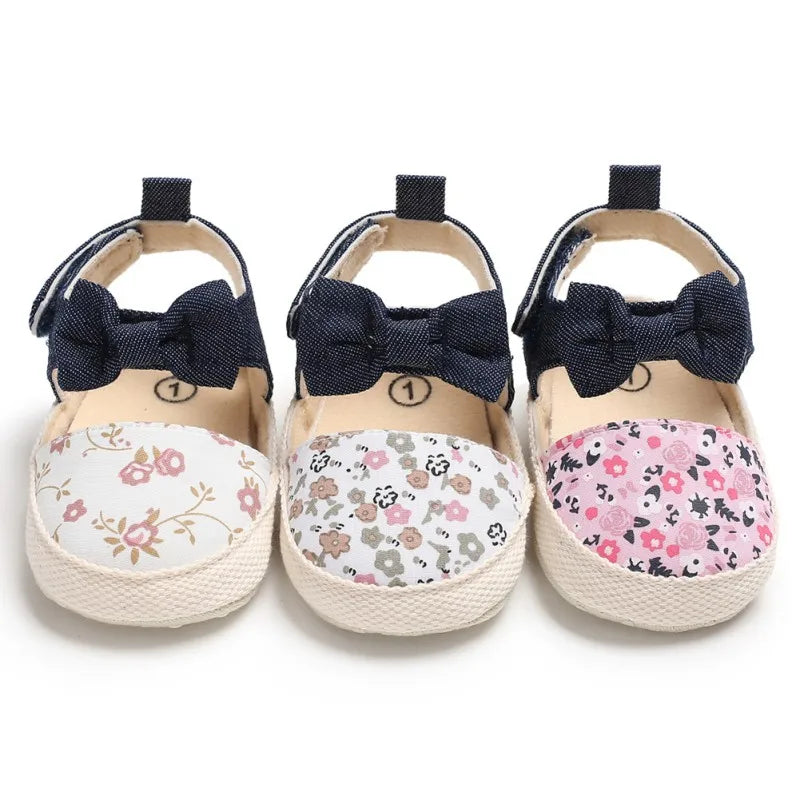 Lovely Flower Print Bow Canvas Baby Shoes - Summer Soft Sole First Walkers Party Princess Girl Shoes
