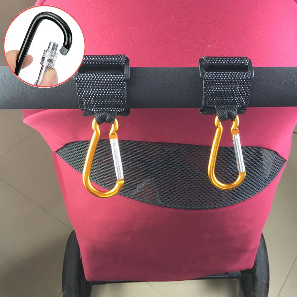 Crafted with durability in mind, our hook features a robust carabiner stand that securely attaches to various surfaces. Say goodbye to clutter and hello to effortless organization with our Multi-Purpose Baby Stroller Hook.