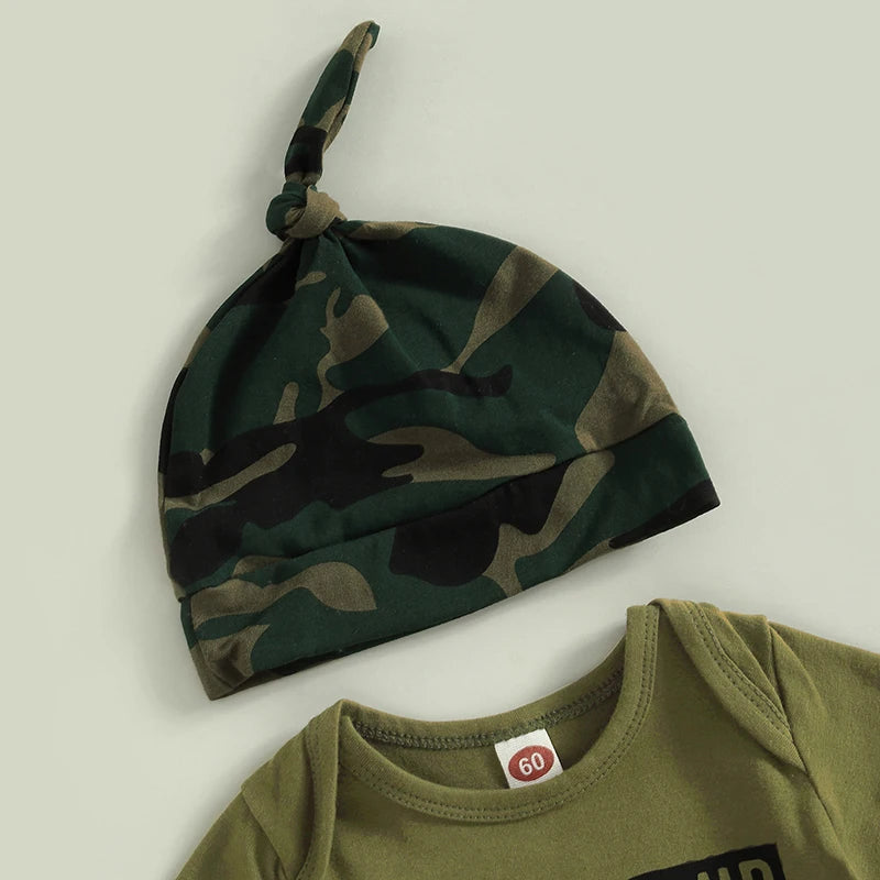 Crafted from soft and breathable materials, this outfit ensures your newborn stays cozy and comfortable as the weather warms up. The short sleeves of the romper provide ventilation, while the pants offer coverage and freedom of movement. The knot hat adds an extra dose of cuteness to your baby boy's look, completing the ensemble with style.