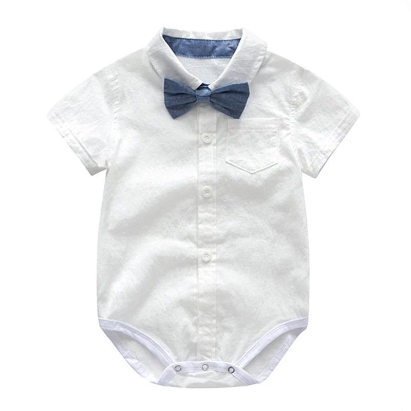 Newborn Baby Boy Formal Romper Suit with Bow: Gentleman Party Outfit