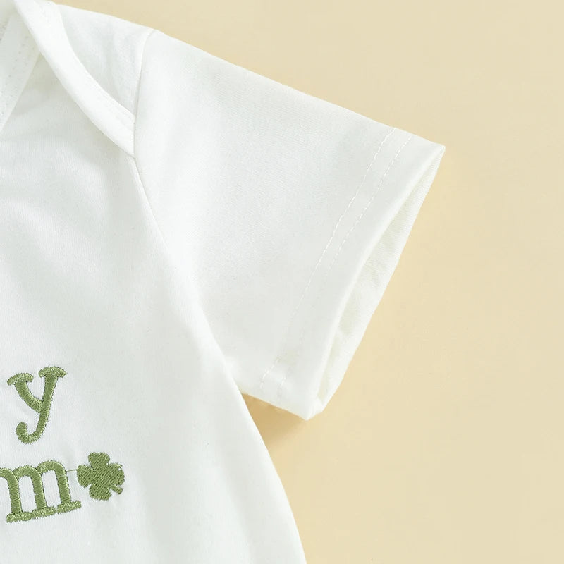 Newborn Baby Girl St. Patrick's Day Four Leaf Clover Romper Set