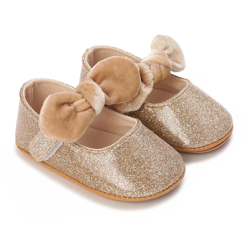 The golden princess design adds a touch of sophistication and nobility to your baby's outfit, making them stand out on their special day. The comfortable soft soles ensure that your baby can walk and move around with ease, while the non-slip design provides stability and support.