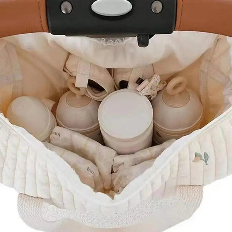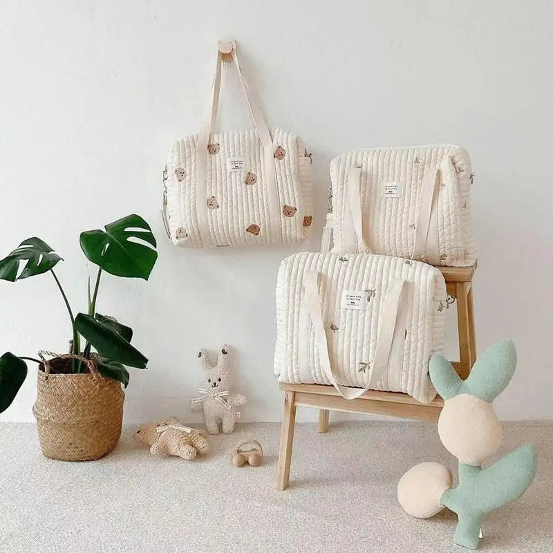 Stay organized on the go with our Portable Embroidered Stroller Nappy Bag. This quilted bag is designed with convenience and style in mind, making it the perfect accessory for busy parents.