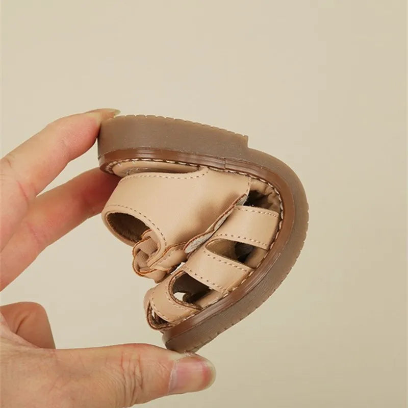 Crafted for comfort and style, these sandals feature a closed-toe design to protect delicate toes while allowing ample airflow. The soft sole ensures gentle support for growing feet, making them ideal for toddlers taking their first steps.