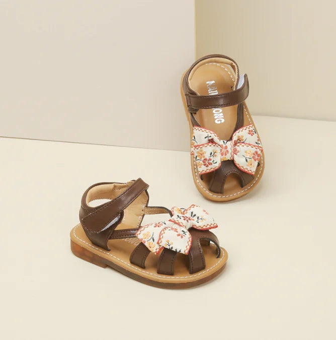 Get your little princess ready for summer adventures with our Leather Bowtie Girls Sandals. Crafted with premium leather, these sandals feature a charming bowtie design that adds a touch of elegance to any outfit.