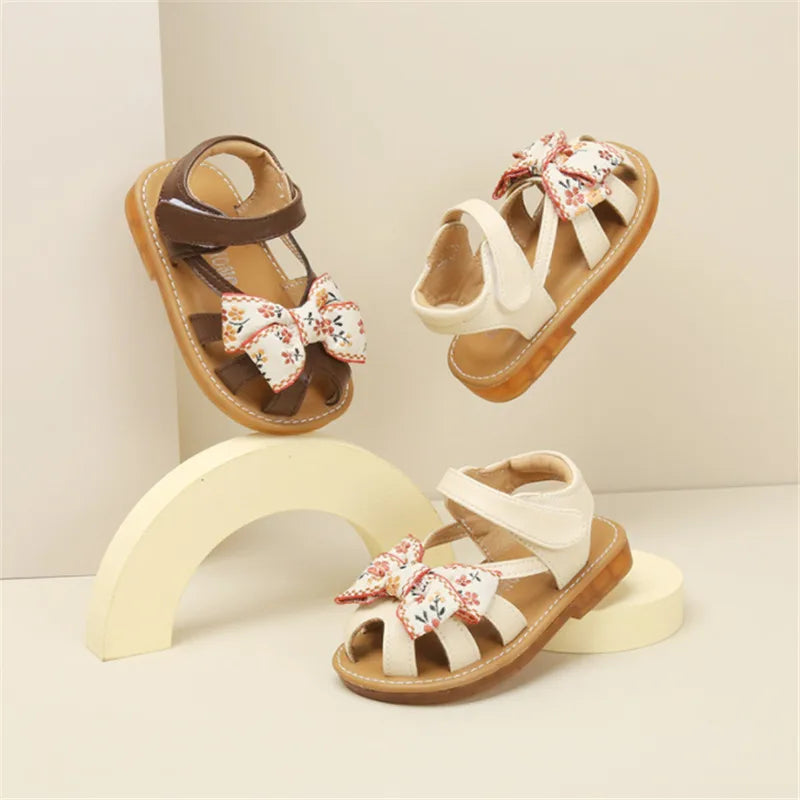Princess Style Leather Bowtie Girls Sandals for Summer Fun