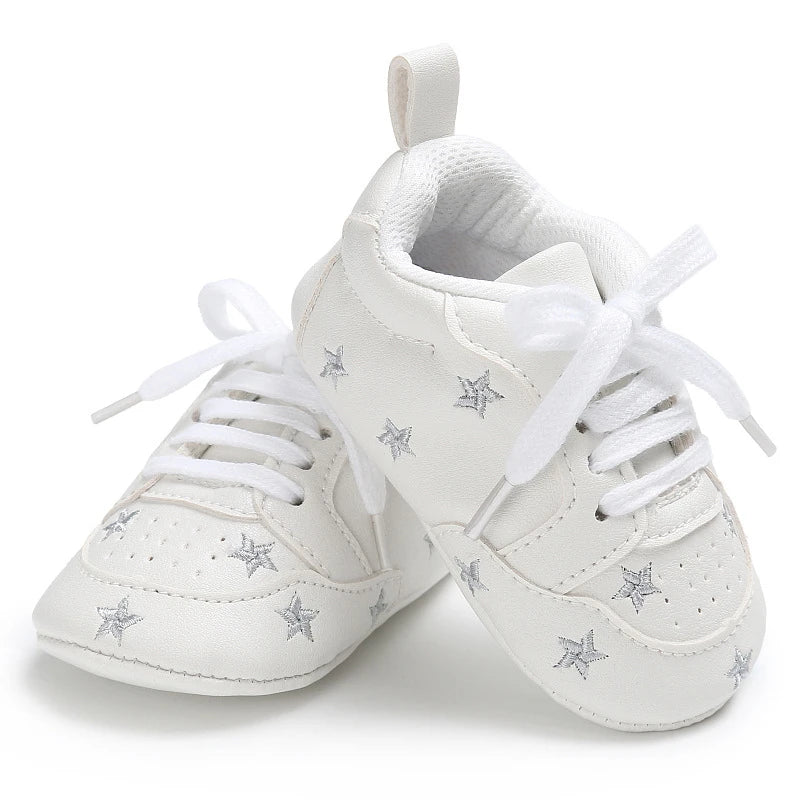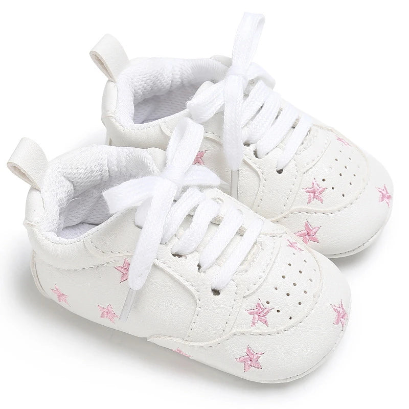Featuring a soft sole, these shoes provide gentle support and flexibility, perfect for infants and toddlers up to 18 months old. Whether it's crawling, cruising, or taking those first steps, these sneakers offer comfort and security.