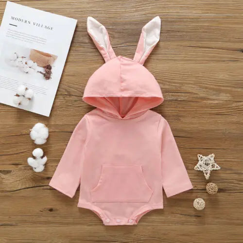 Rabbit Ear Baby Fall Clothes: Long Sleeve Hooded Jumpsuit - Fashion Clothes Outfit