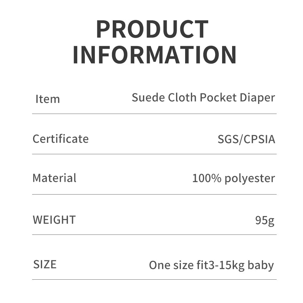 Reusable Cloth Diaper: Suede Cloth Inner, Unisex, 3-15KG, Pocket Position Baby Diaper