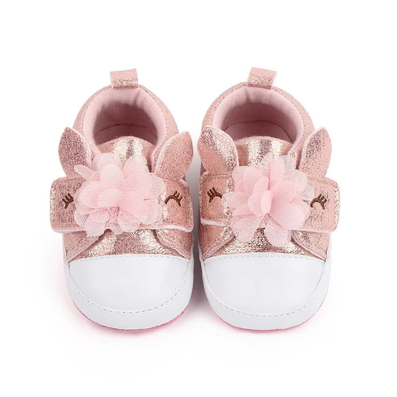 Introducing our Shiny PU Leather Princess Shoes for Baby Girls, adorned with cute unicorn and flower details. These adorable shoes are designed to make your little princess shine during the spring and autumn seasons.