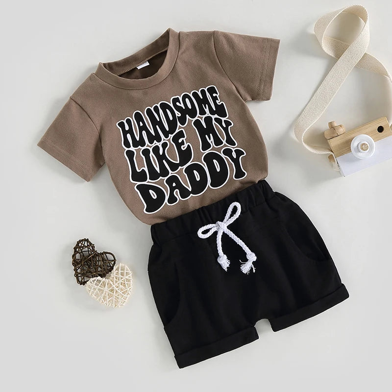 Dress your little man in style with our Letter Print Short Sleeve Top and Pocket Shorts Set, perfect for summer adventures. This 2-piece outfit features a comfortable short sleeve top adorned with playful letter prints, paired with pocket shorts for a cool and casual look.