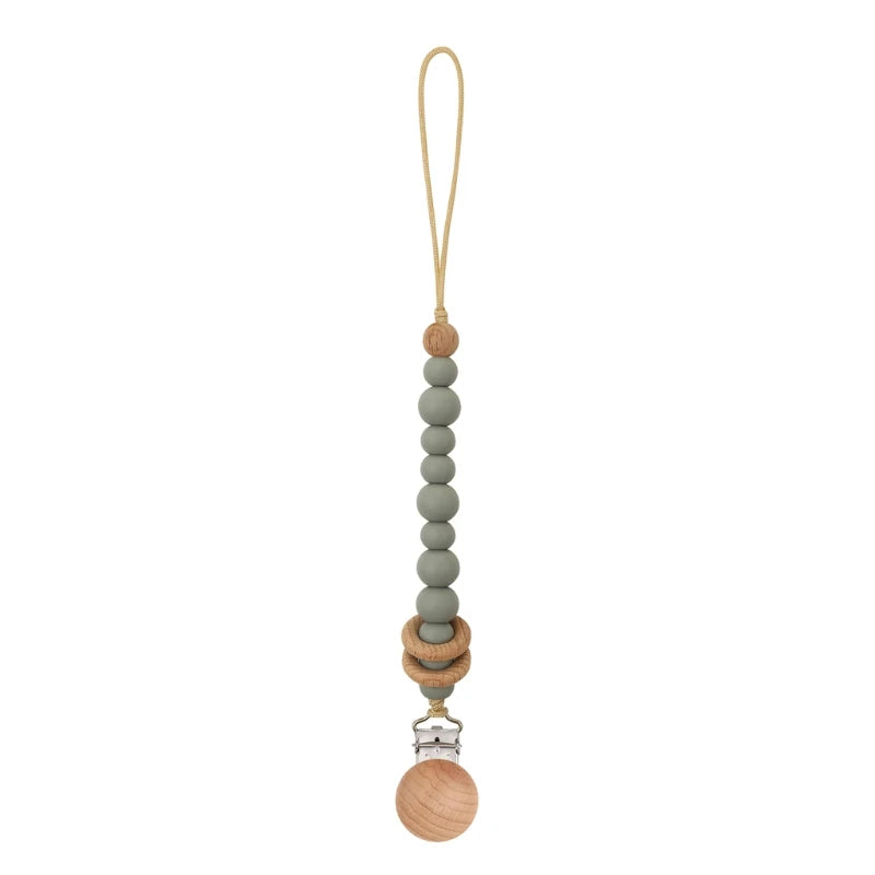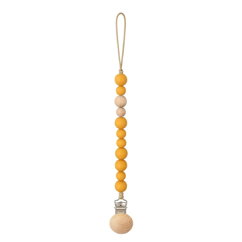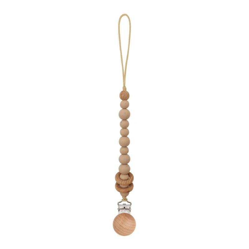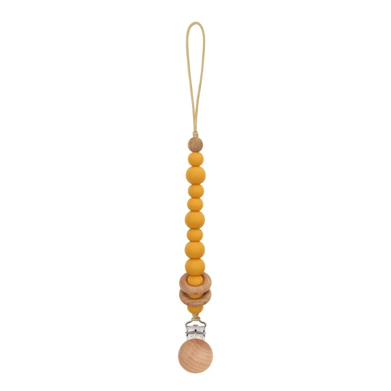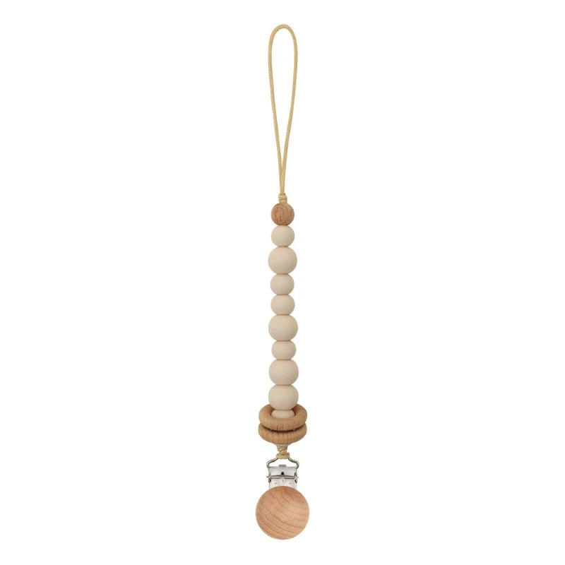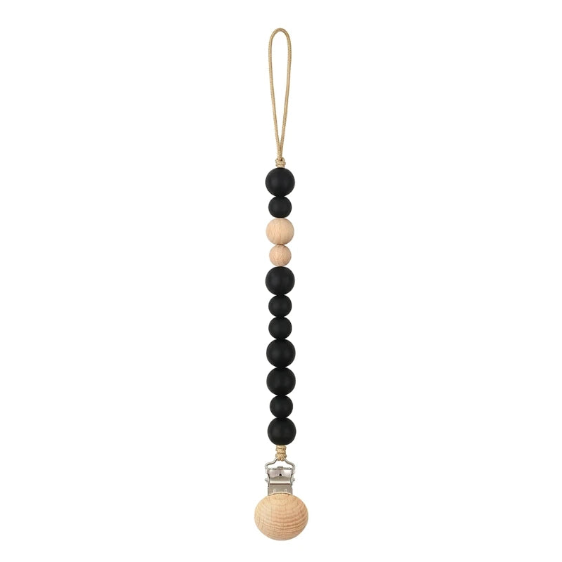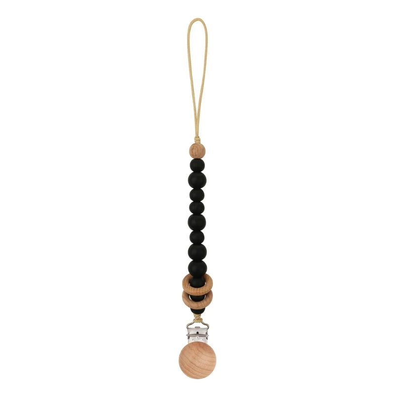 The silicone beads offer tactile stimulation and relief for teething babies, while the wooden ring provides a safe and natural teething option. The pacifier chain ensures that the pacifier stays within reach, preventing it from getting lost or dropped.