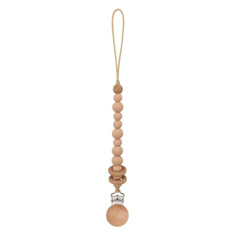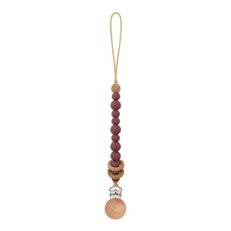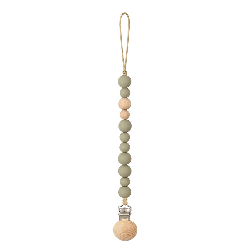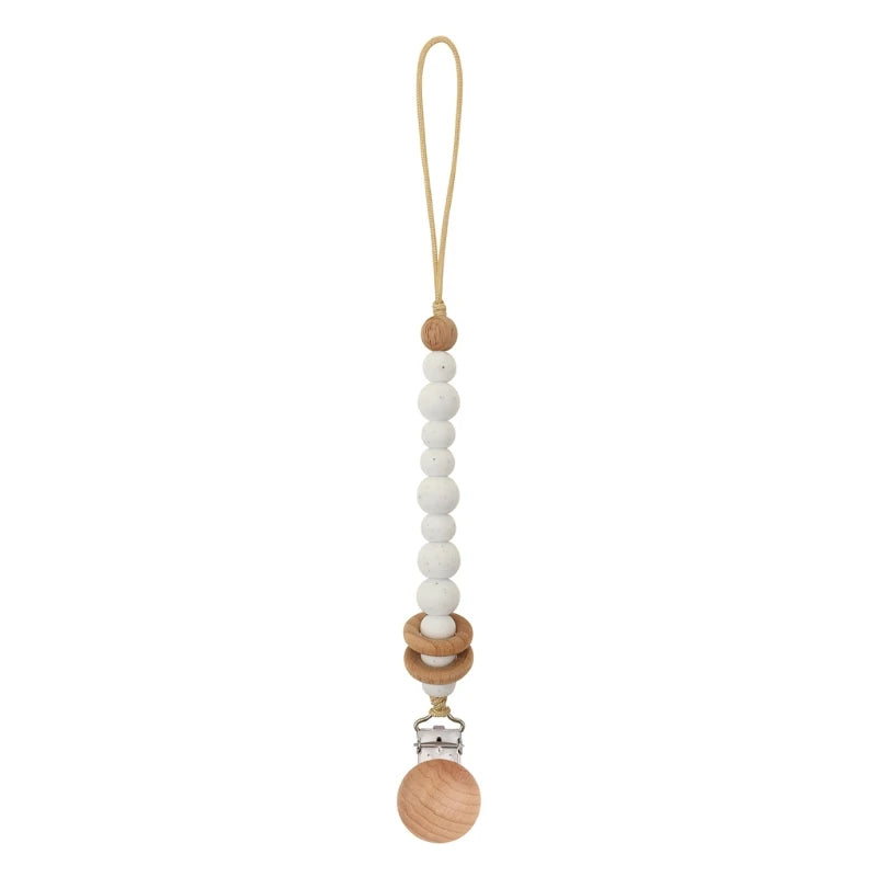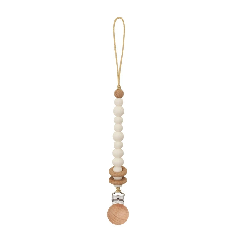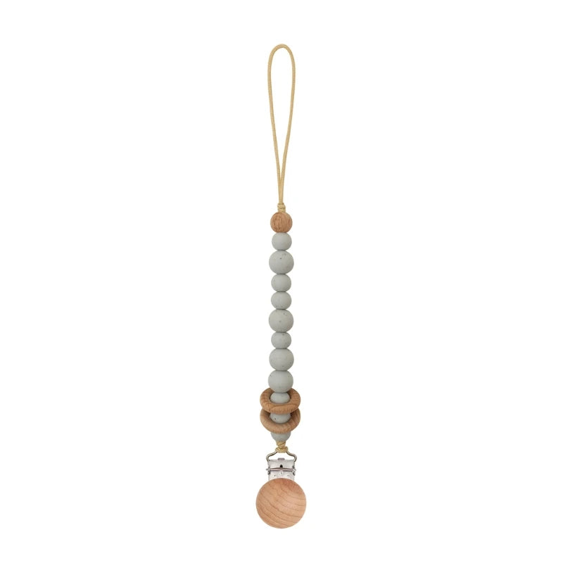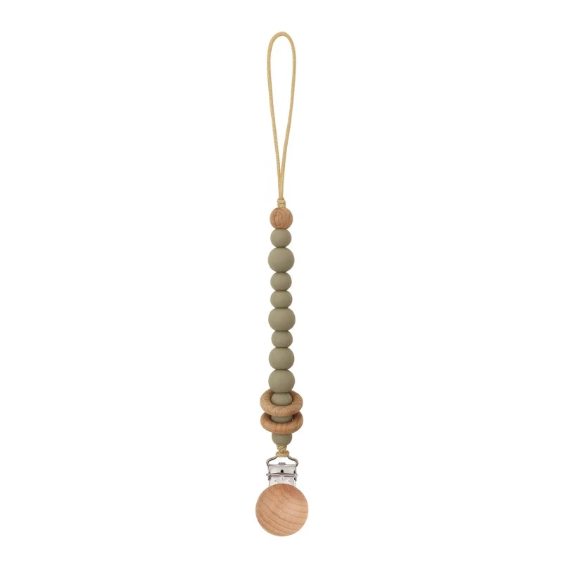 The silicone beads offer tactile stimulation and relief for teething babies, while the wooden ring provides a safe and natural teething option. The pacifier chain ensures that the pacifier stays within reach, preventing it from getting lost or dropped.