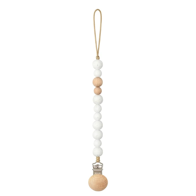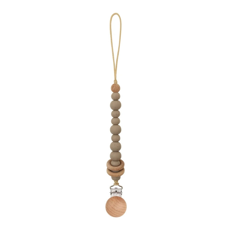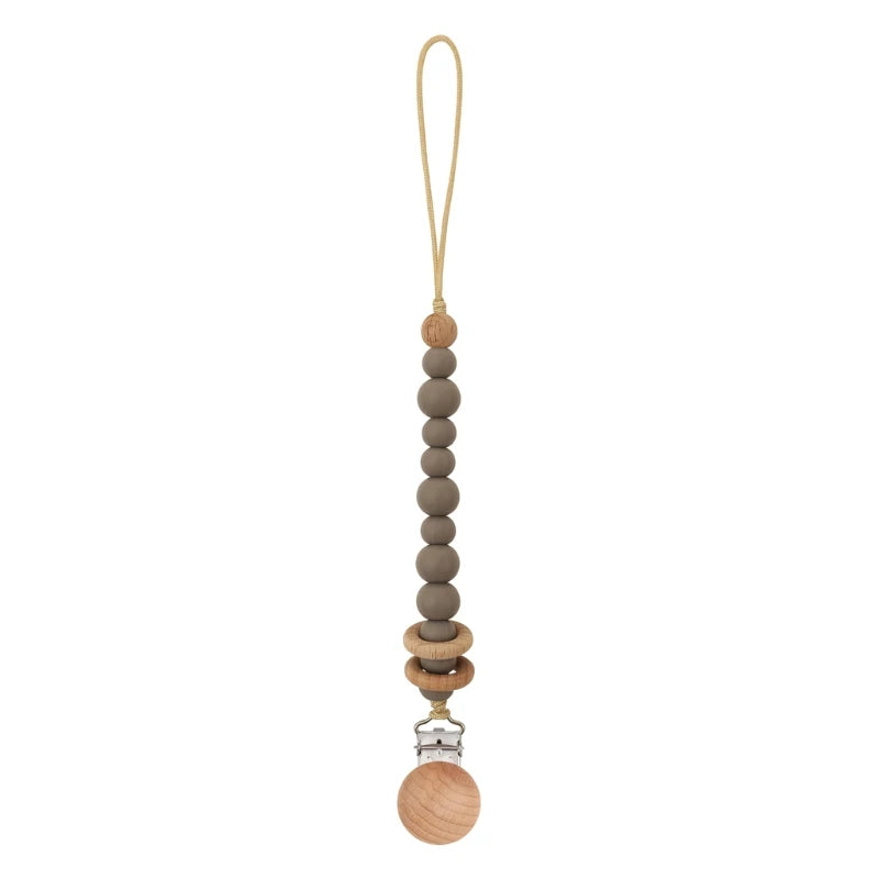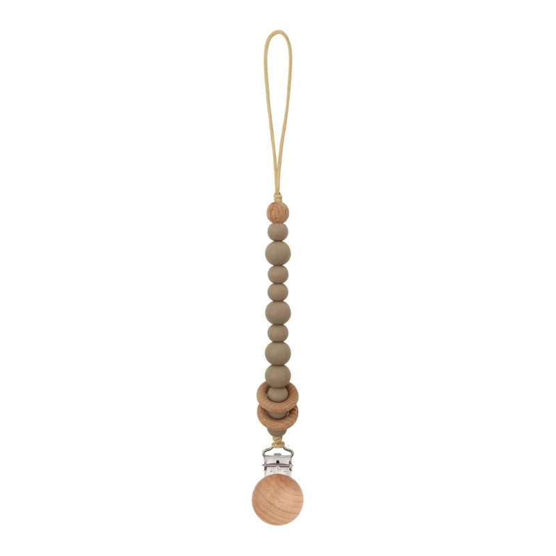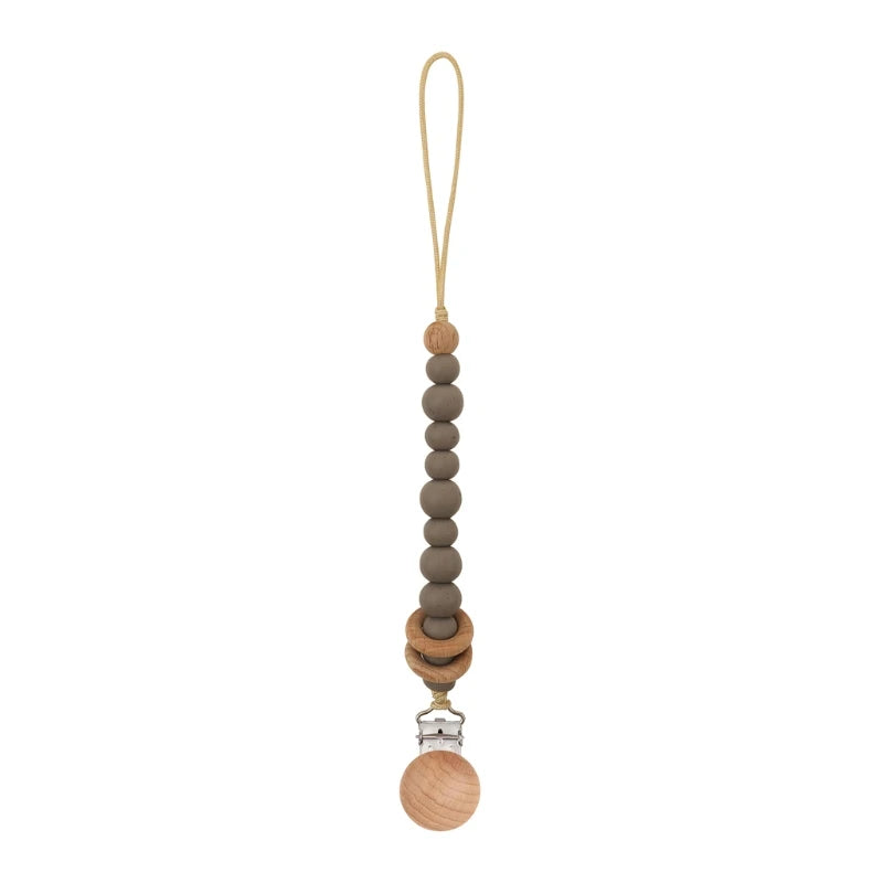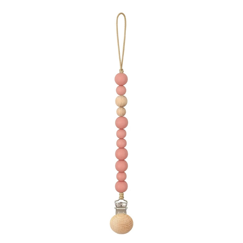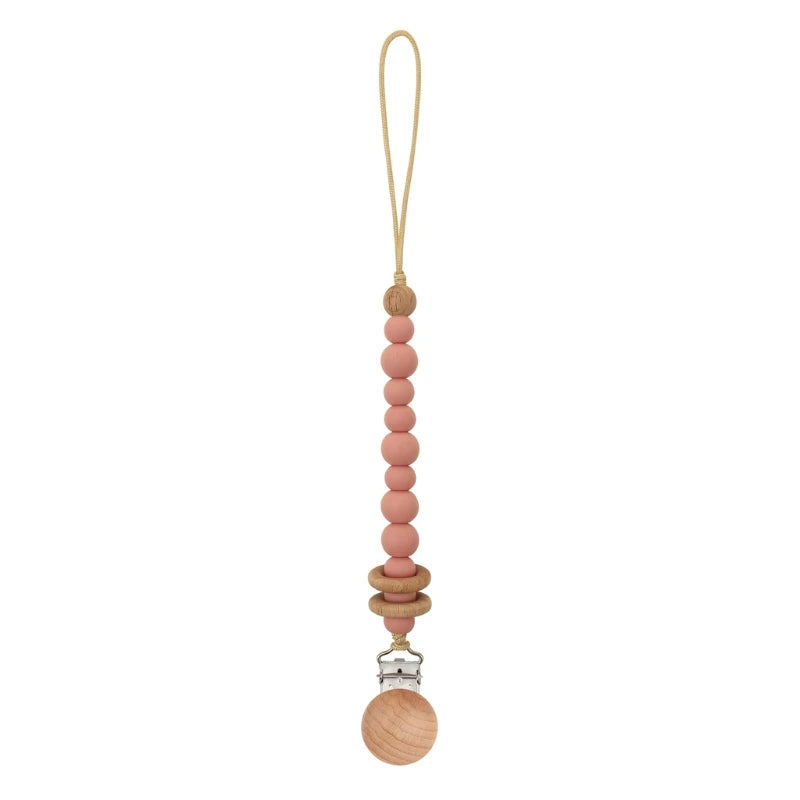 The silicone beads offer tactile stimulation and relief for teething babies, while the wooden ring provides a safe and natural teething option. The pacifier chain ensures that the pacifier stays within reach, preventing it from getting lost or dropped.