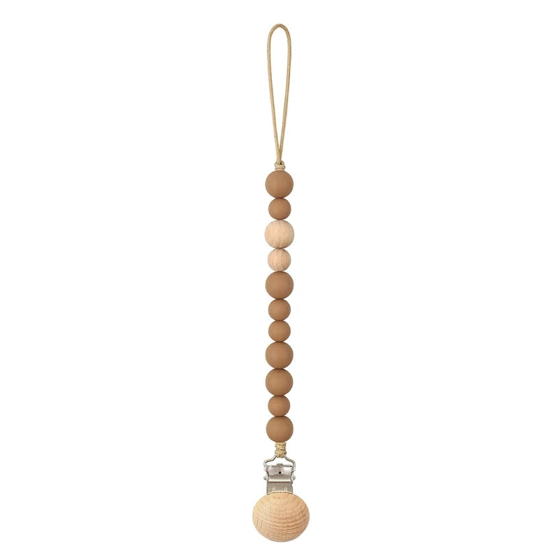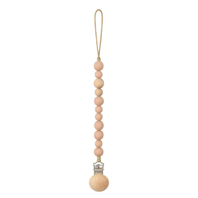 Keep your baby's pacifier safe and stylish with our Silicone Beads Wooden Ring Baby Pacifier Clips. Crafted with a combination of silicone beads and a wooden ring, these clips provide a secure attachment for your baby's pacifier while adding a touch of charm to their accessories.