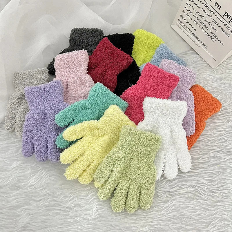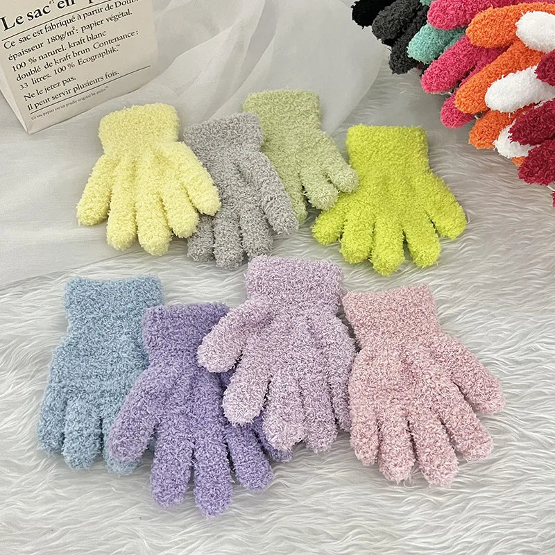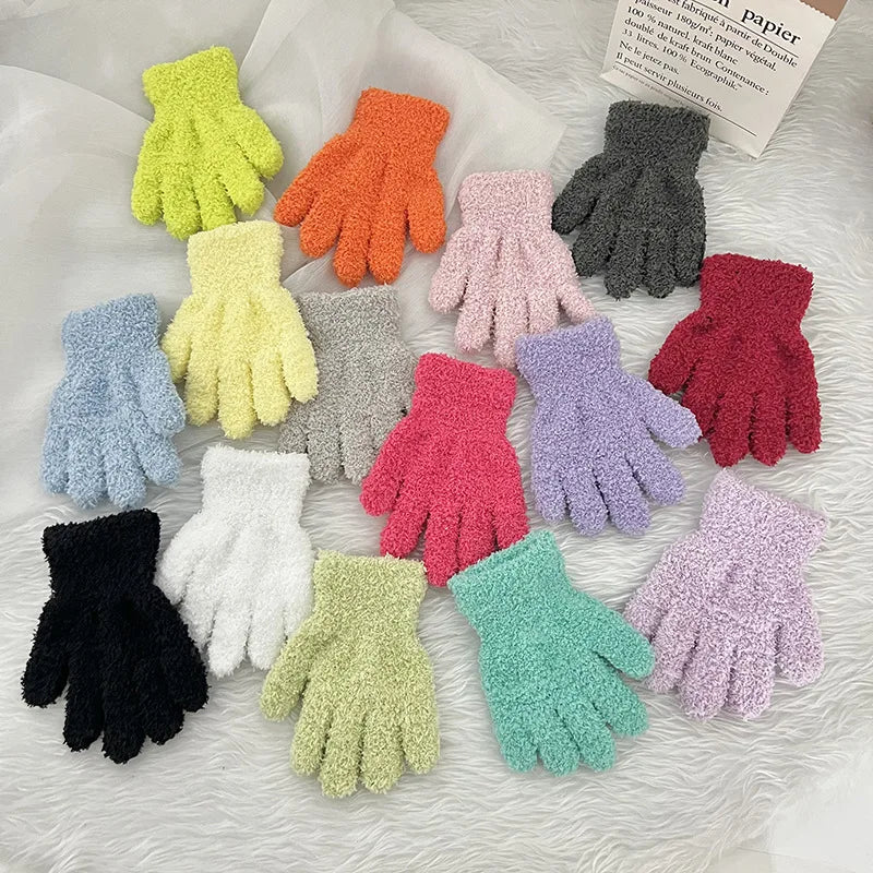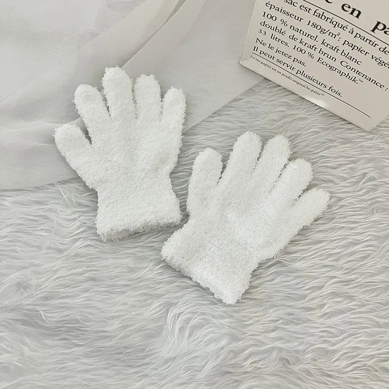 Simple Solid Color Coral Fleece Baby Gloves - Winter Warm Thick Knitted Mittens