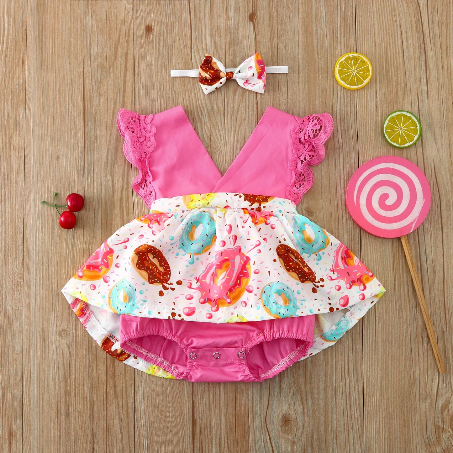 Sleeveless Bodysuit + Headbands Sets for Newborn Baby Girls - Lace Donut Dress Romper Girl Princess Clothes Sets