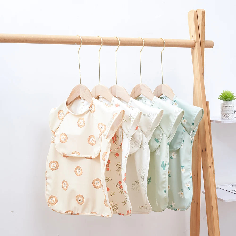 With its sleeveless design, this bib offers freedom of movement for your baby while protecting their clothing from food stains. The food pocket catches crumbs and spills, making cleanup quick and easy. Whether you're at home or on the go, this bib is essential for stress-free feeding.