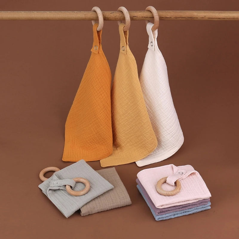 Invest in quality and comfort with our soft cotton baby bibs with wood teether ring. Whether you're a new parent or looking for a thoughtful gift for a baby shower, these bibs are sure to be appreciated. Add them to your baby essentials collection and enjoy the practicality and charm they bring to caring for your newborn.