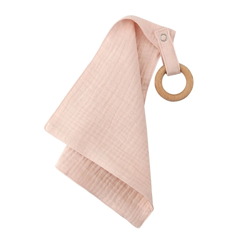 Soft Cotton Baby Bibs with Wood Teether Ring - Solid Color