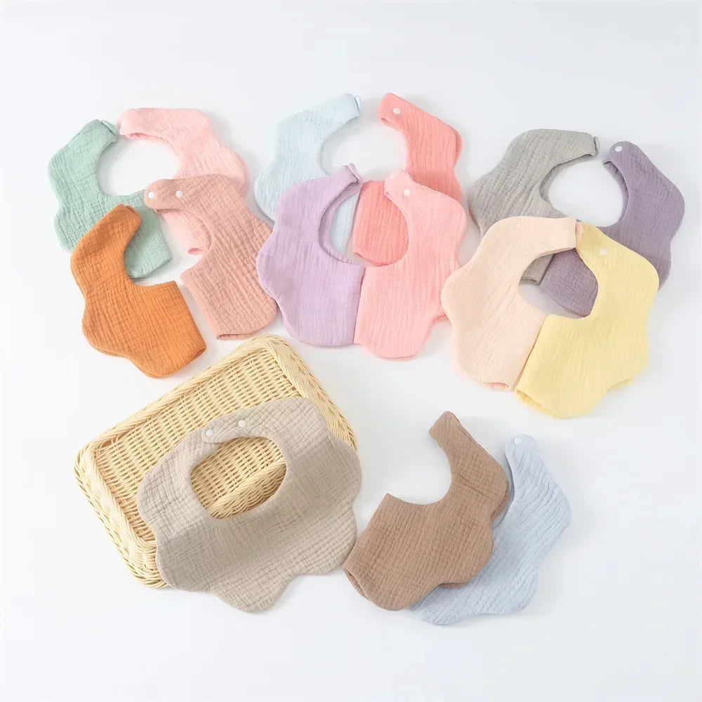 Designed to catch saliva and spills, these bibs also double as burp cloths, providing versatile functionality for busy parents. The gauze fabric is gentle on your baby's delicate skin, making these bibs suitable for everyday use. Whether you're at home or on the go, these bibs are essential for keeping your baby clean and comfortable.