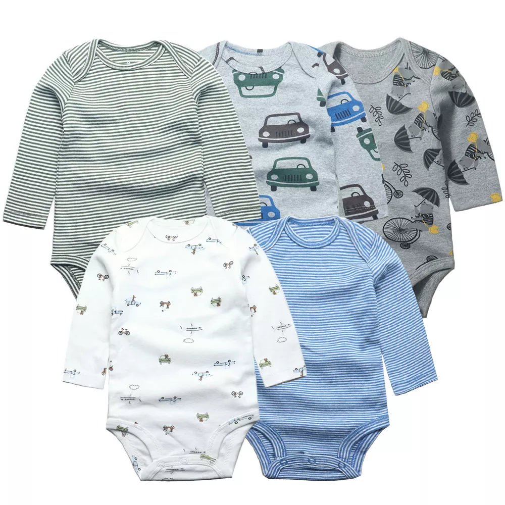 Spring Autumn Baby Bodysuits - Long Sleeve 100% Cotton Infant Jumpsuits