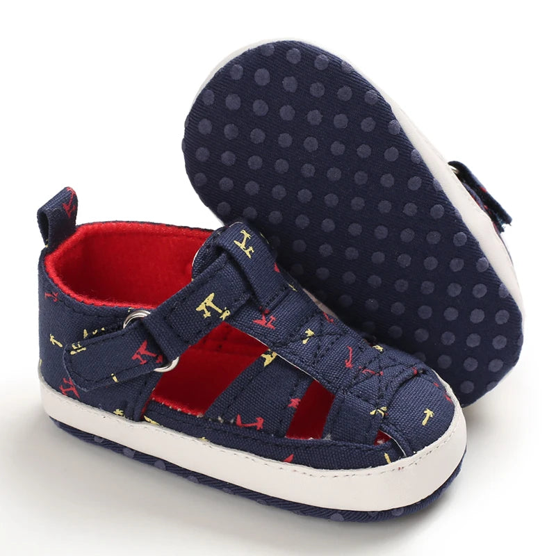 Crafted from breathable canvas material, these sandals keep your baby's feet cool and comfortable even on the warmest days. The non-slip sole provides stability and traction, ensuring safe and confident walking on various surfaces.