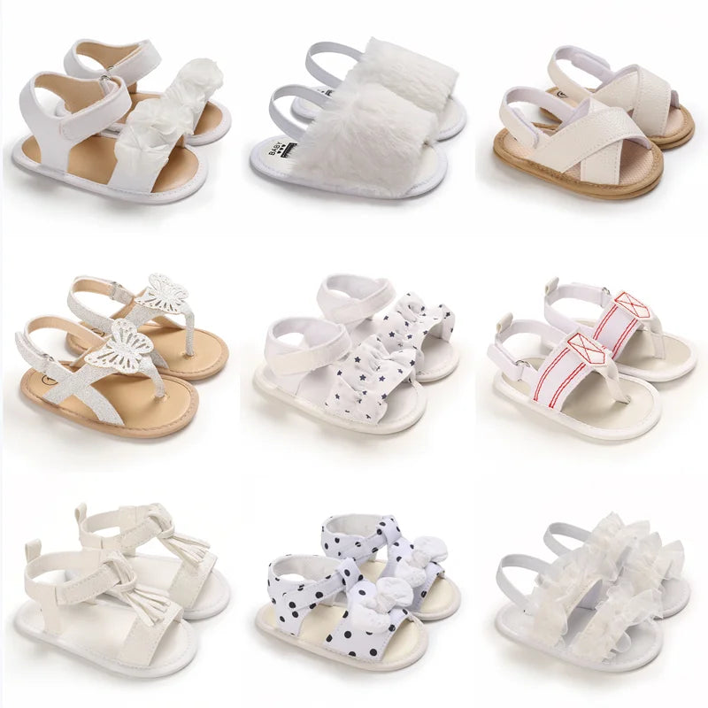 Elevate your little girl's summer wardrobe with our Newborn Girls Summer Fashion Sandals. These adorable white shower shoes are designed for comfort and style, making them perfect for sunny days and special occasions.
