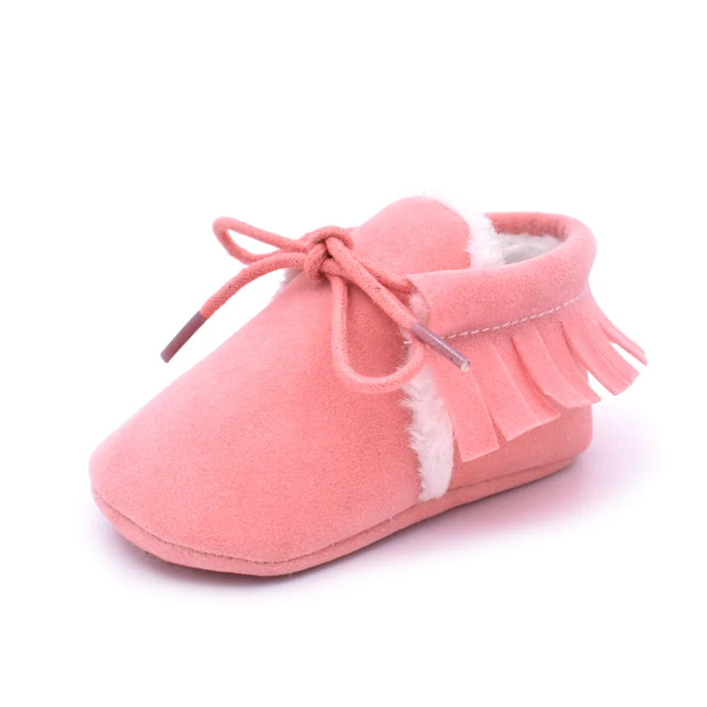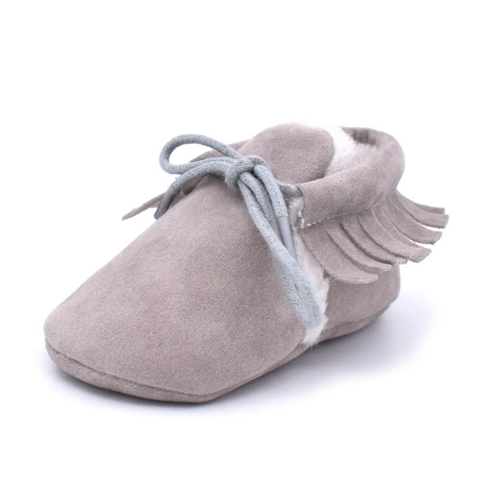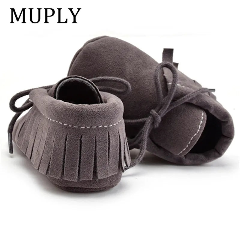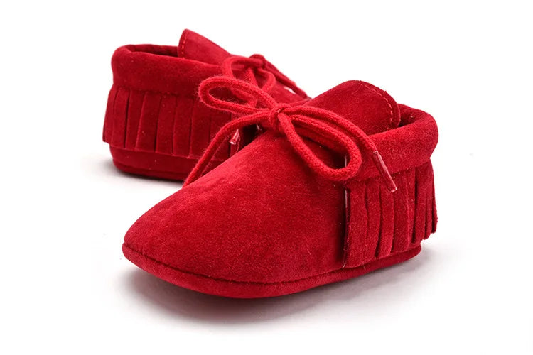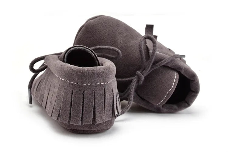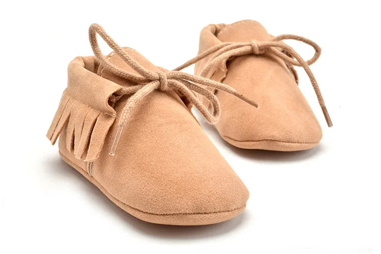Suede Leather Baby Moccasins - Soft Fringe Soft Soled Non-slip Crib Shoes for Boys and Girls