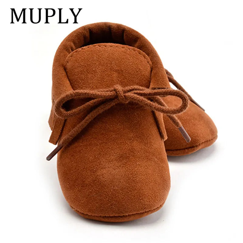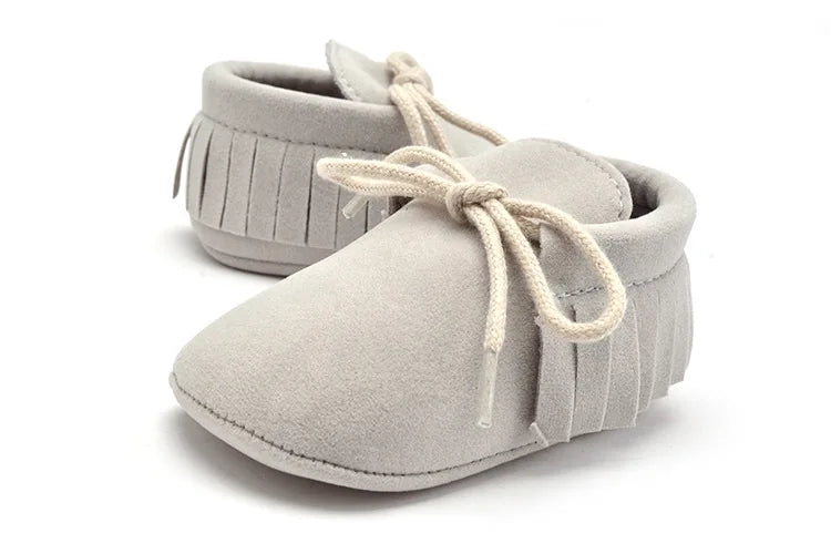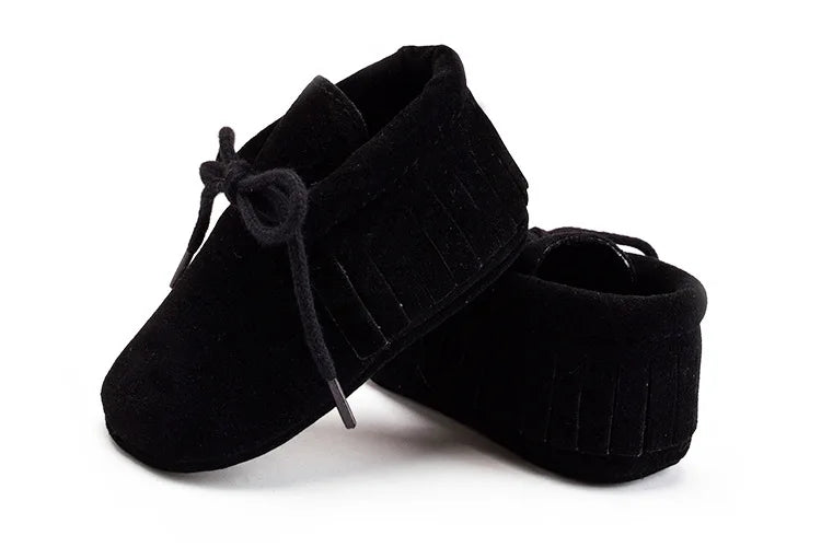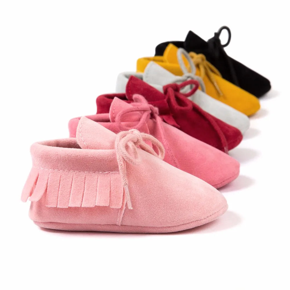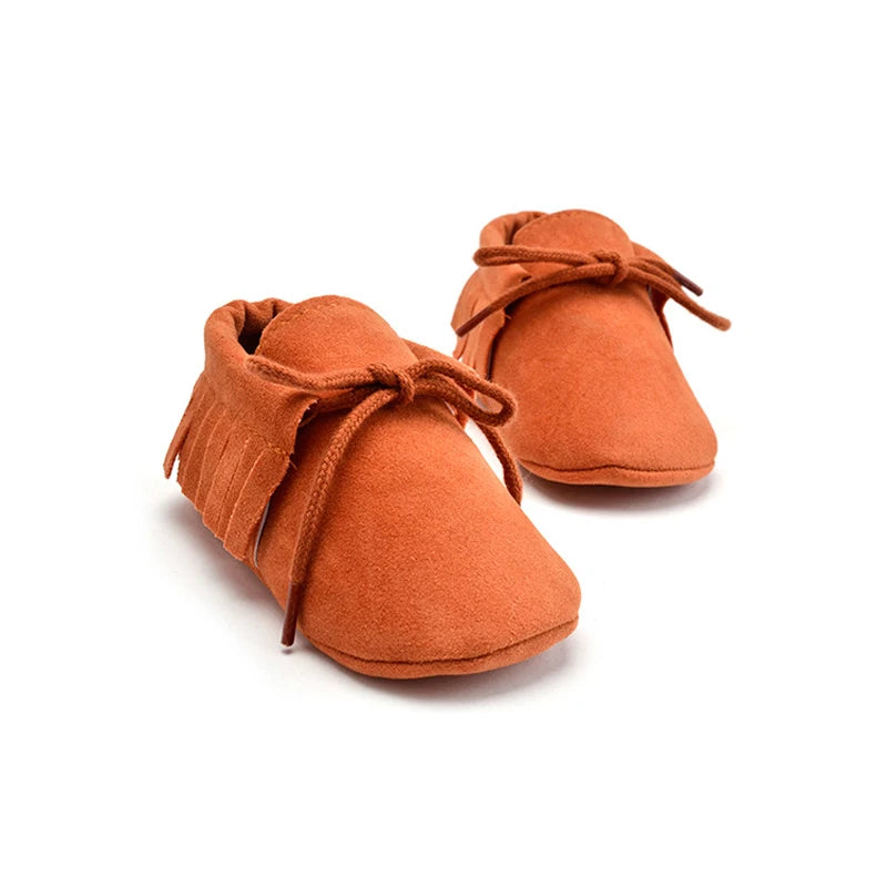 Introduce your newborn to comfort and style with our PU Suede Leather Baby Moccasins. These adorable shoes feature soft fringe detailing, adding a touch of charm to your little one's look. Crafted from high-quality PU suede leather, they offer both durability and softness for delicate feet.