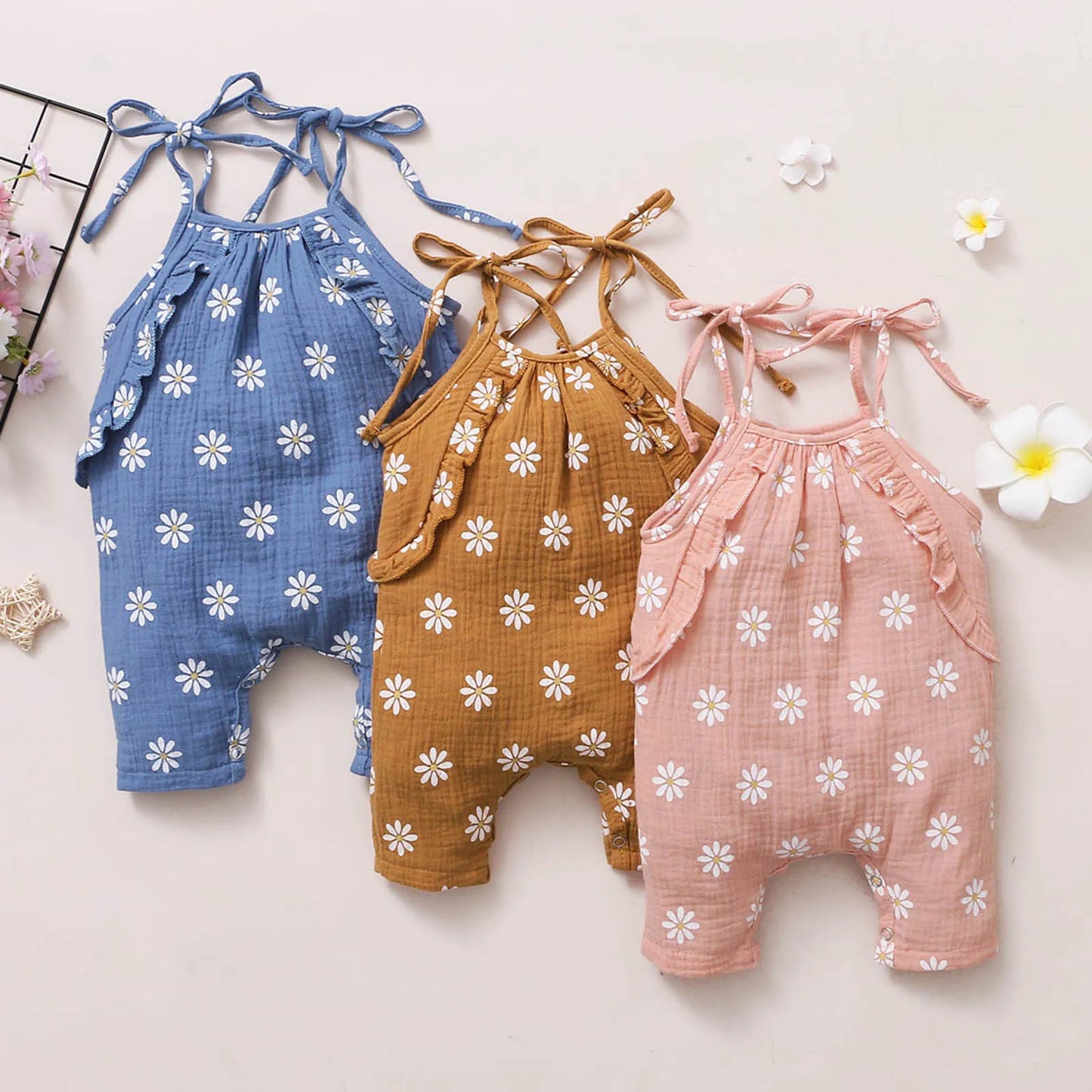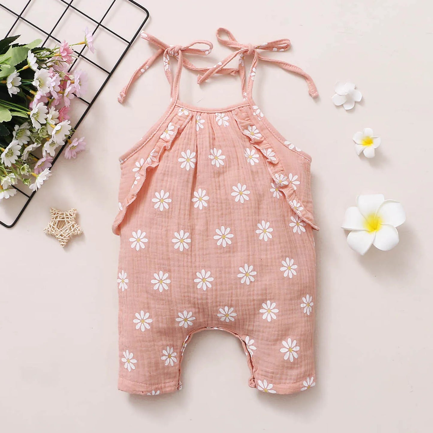 Elevate your baby girl's summer wardrobe with this fashionable and practical romper, designed to keep her stylish and comfortable all season long.