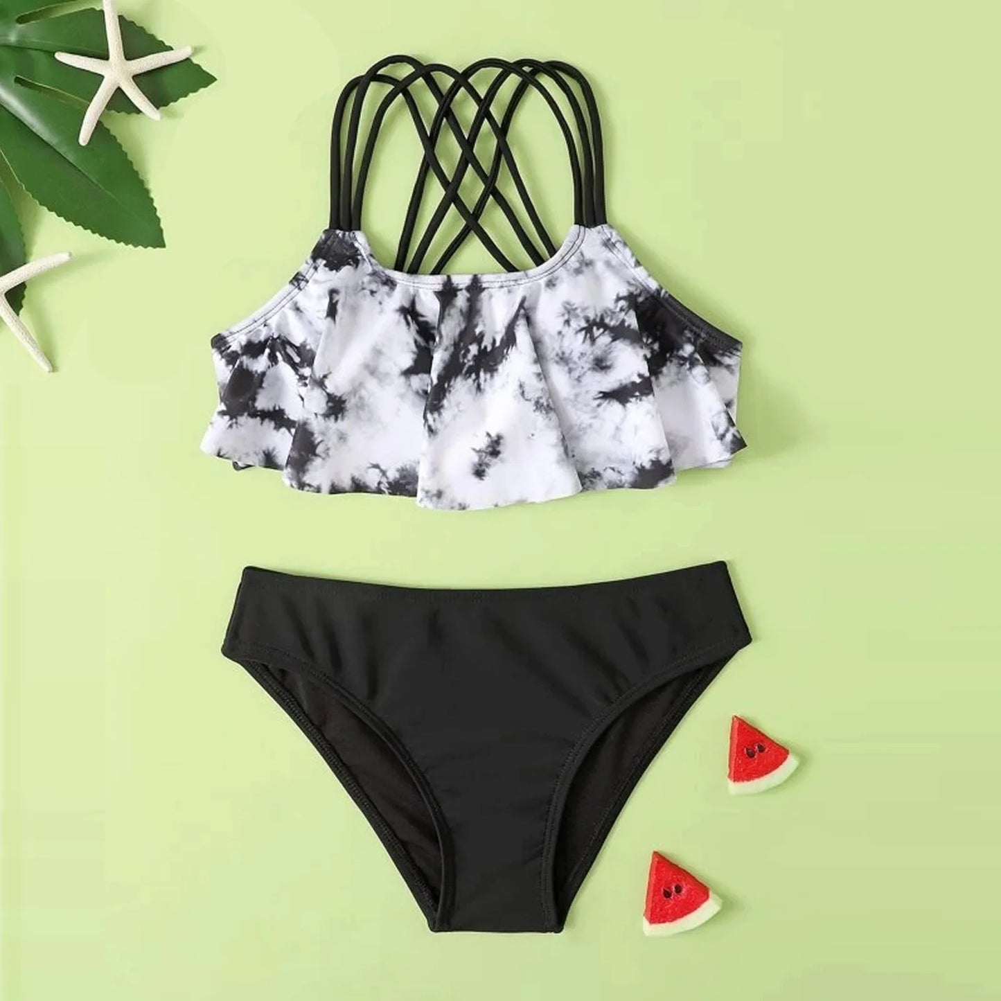 Summer Girls' Printed Swimsuit Set: Children's Split Bikini Swimwear