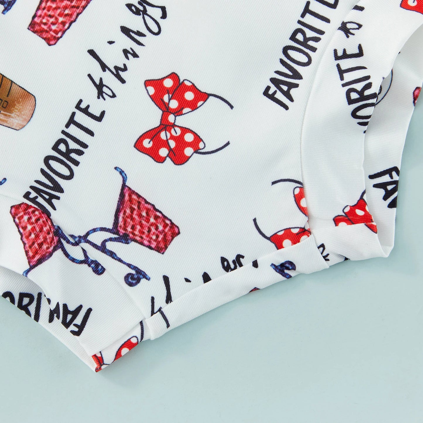 Crafted from soft and breathable fabric, the short sleeve romper features a vibrant red color adorned with playful letter prints, adding a touch of fun to her outfit. Paired with the matching printing shorts and headdress, this set is perfect for any summer occasion.