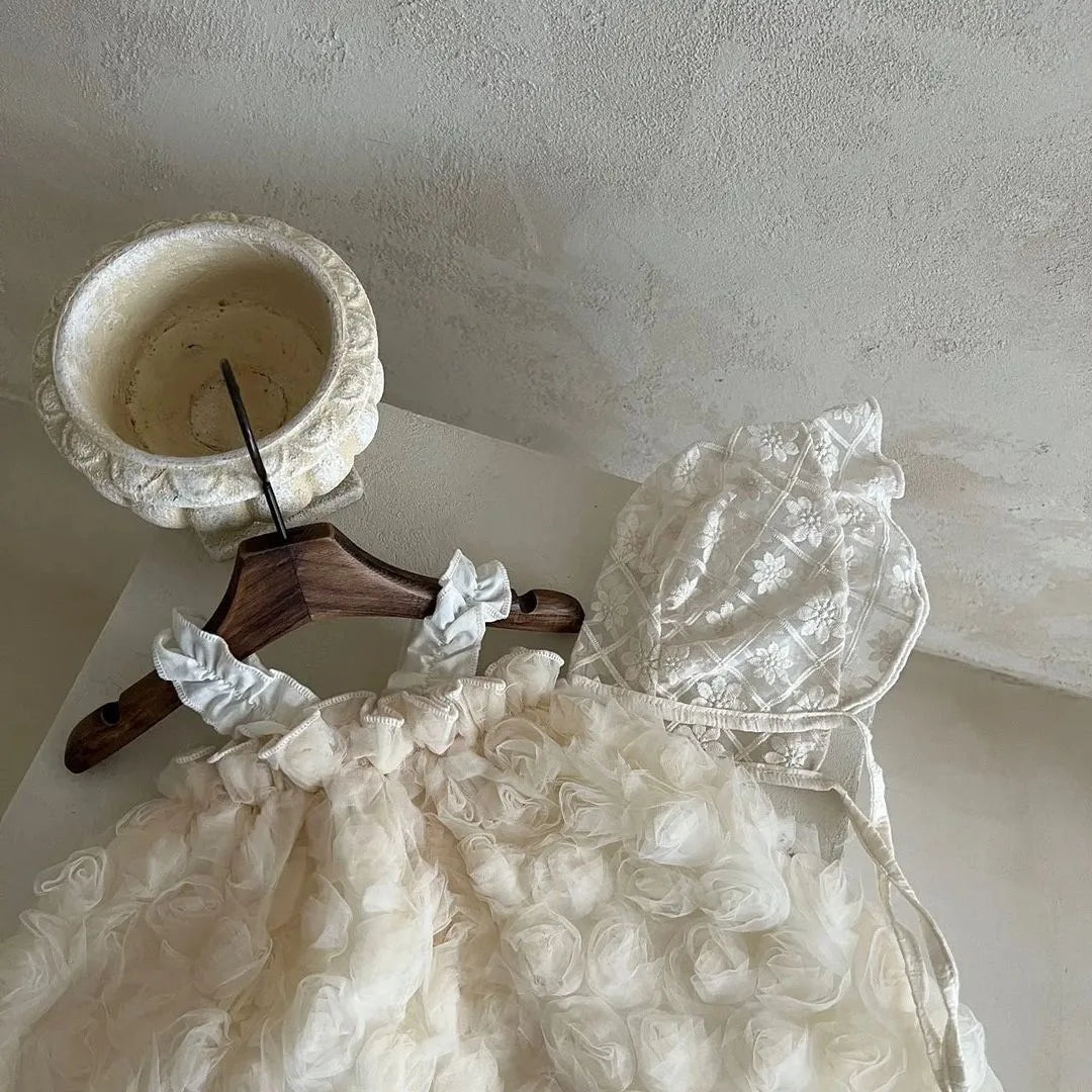 Summer Toddler Baby Girl Fashion Dimensional Yarn Flower Sling Ball Gown Dress - Sweet Temperament Princess Dresses