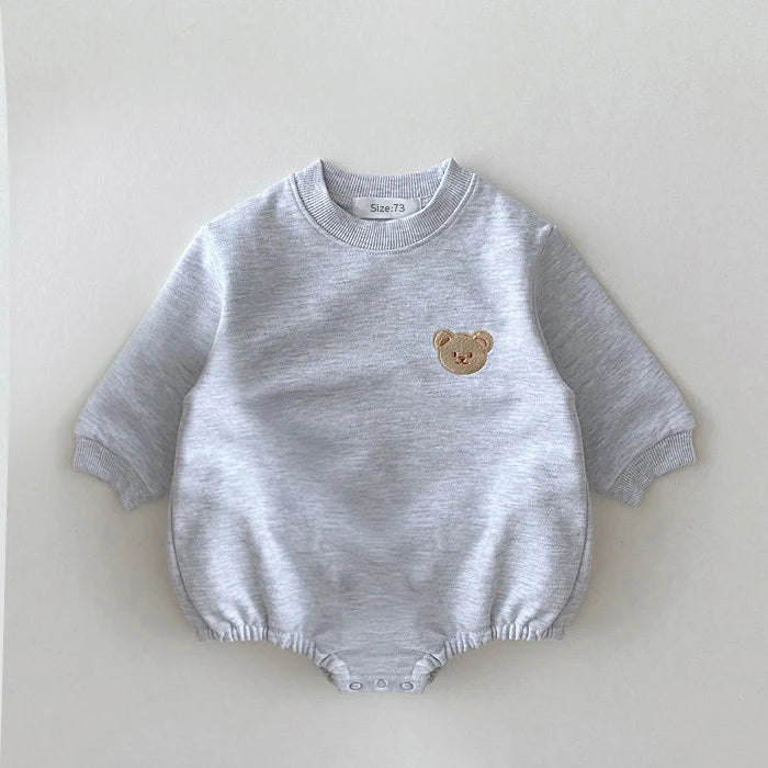 Wrap your little one in comfort and style with our Sweet Lavender Baby Bear Sweatshirt Romper! This adorable romper features a charming bear design and is crafted from soft and cozy terry cotton fabric, ensuring maximum comfort for your baby. With its long sleeves and oversized fit, it's perfect for keeping your baby warm and snug during cooler days.