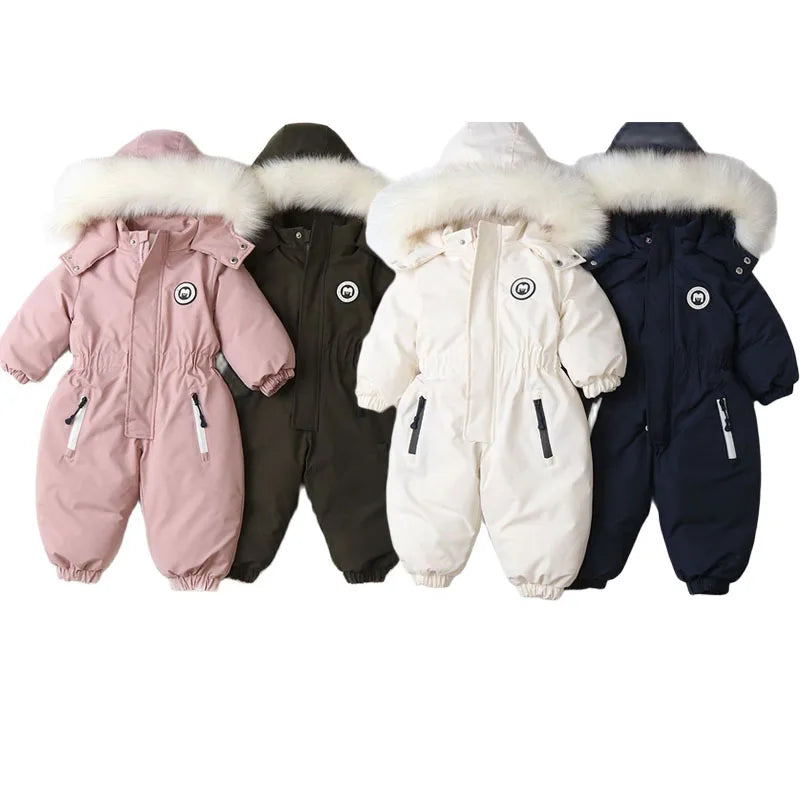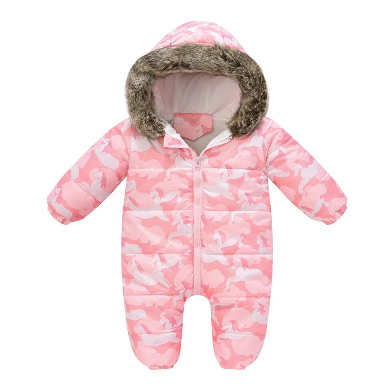 Prepare your little one for the winter chill with our Thick Warm Baby Jumpsuit featuring a Hooded Fleece Lining. This cozy outerwear set is perfect for keeping your baby snug and stylish during cold weather.