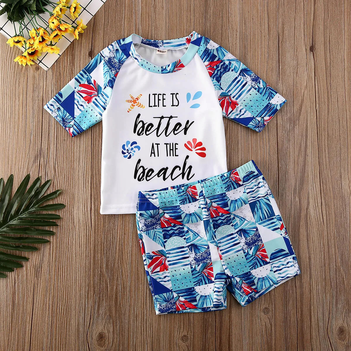 Designed for toddlers aged 2 to 5 years, this 2-piece clothing set is a versatile addition to his summer wardrobe. Whether he's playing in the sand or splashing in the water, he'll look cute and stylish in this charming outfit. Don't miss out on this must-have clothing set – grab yours today and get ready for endless summer adventures!