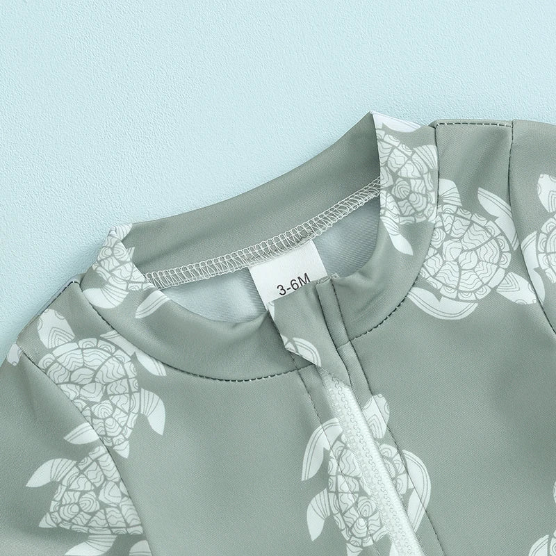 Designed for toddlers aged 0 to 4 years, this swimsuit offers both charm and practicality. The rash guard provides extra sun protection, while the zipper closure allows for easy dressing. Whether he's splashing in the waves or playing in the sand, he'll look cute and stylish in this charming swimwear. Don't miss out on this must-have addition to his summer wardrobe – grab yours today and let the beach adventures begin!