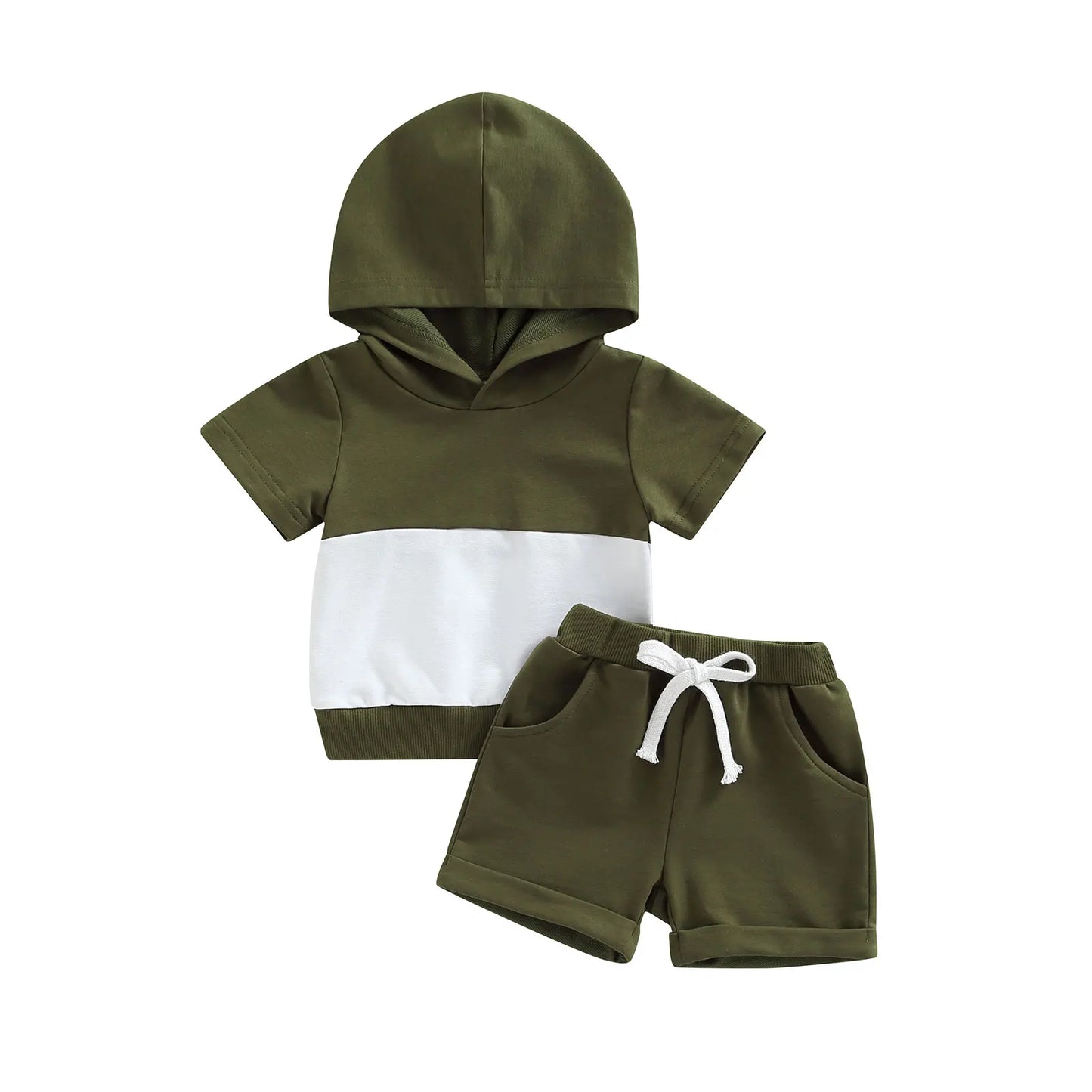 Toddler Baby Boys Hooded Short Sleeve Tops Shorts Color Matching Casual Style Summer Clothing