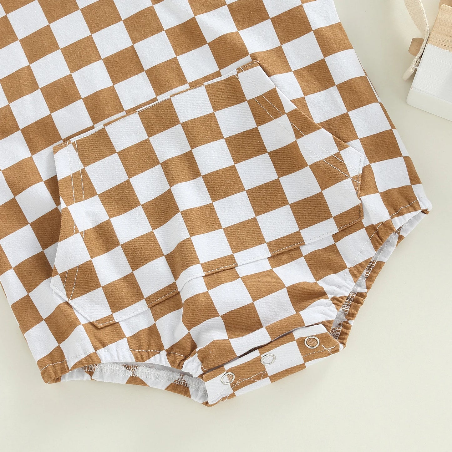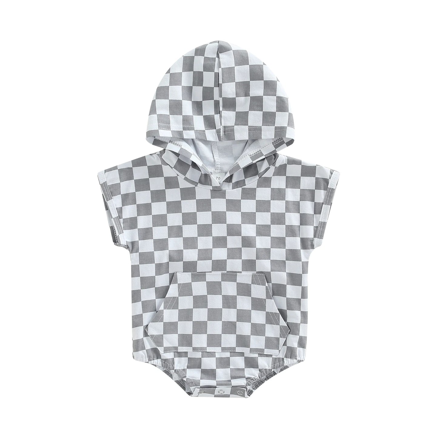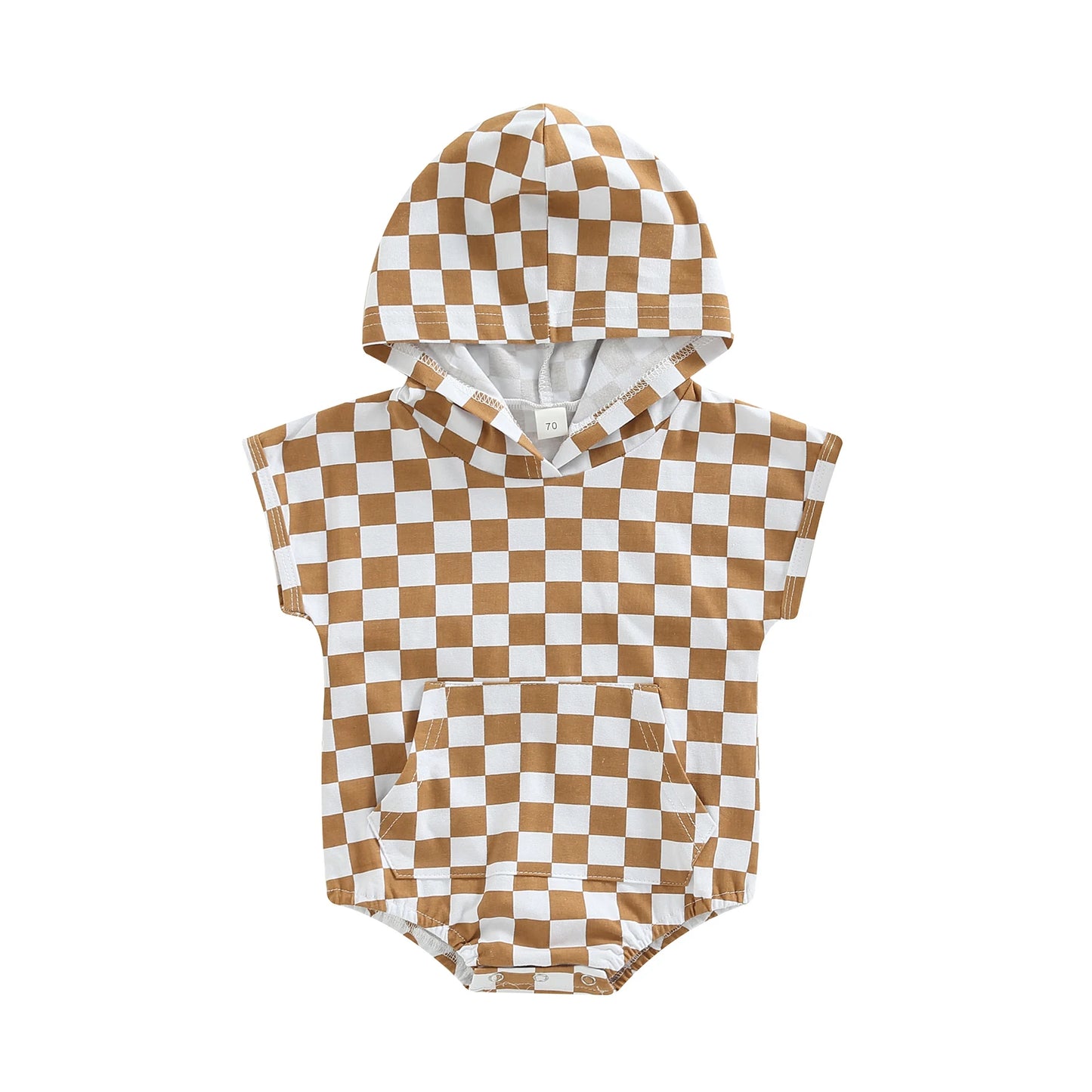 Toddler Baby Girl Boy Summer Clothing Bodysuit - Hooded Plaid Jumpsuit - 2 Colors/Styles Outfit