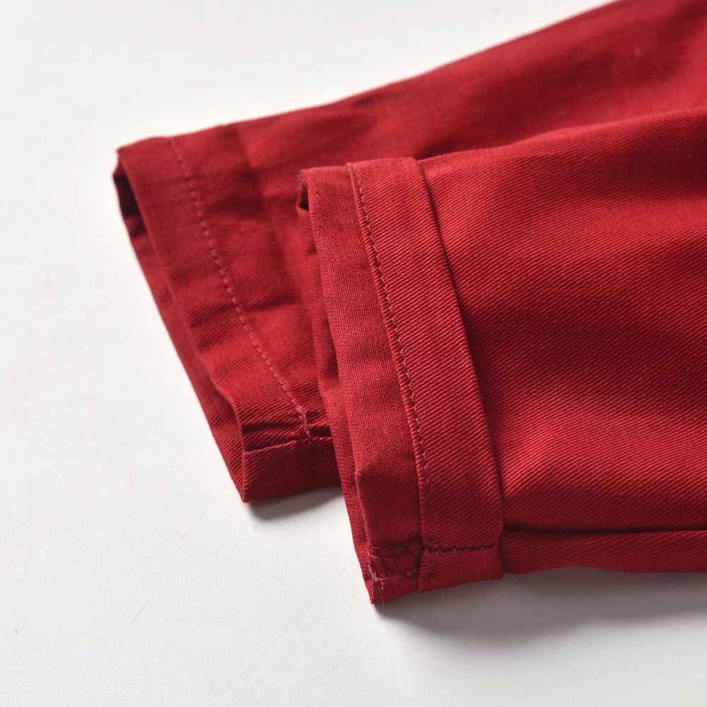 Dress your little gentleman in this charming Toddler Boys Formal Set, perfect for boys aged 1 to 5 years. This outfit includes a short sleeve white shirt paired with vibrant red pants and a striped cup, creating a stylish and formal look for any occasion.